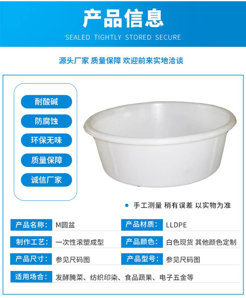 林辉工厂 大号加厚水产养殖塑料盆 圆盆 滚塑盆 圆形pe牛筋白色熟料