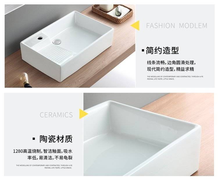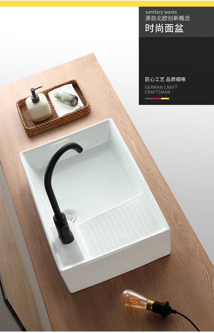 搓板台上盆台上洗手盆单盆家用陶瓷洗脸盆阳台卫生间面盆洗衣池