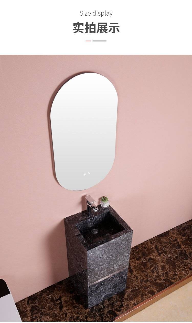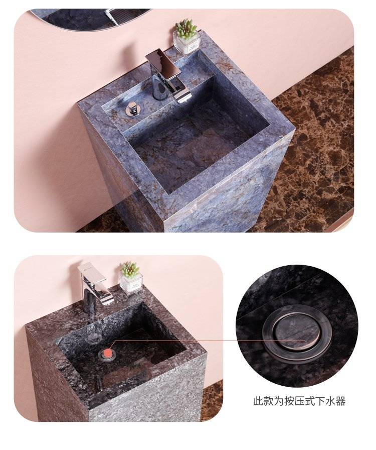 岩板连体立柱盆轻奢简约洗手盆彩色彩花洗面盆