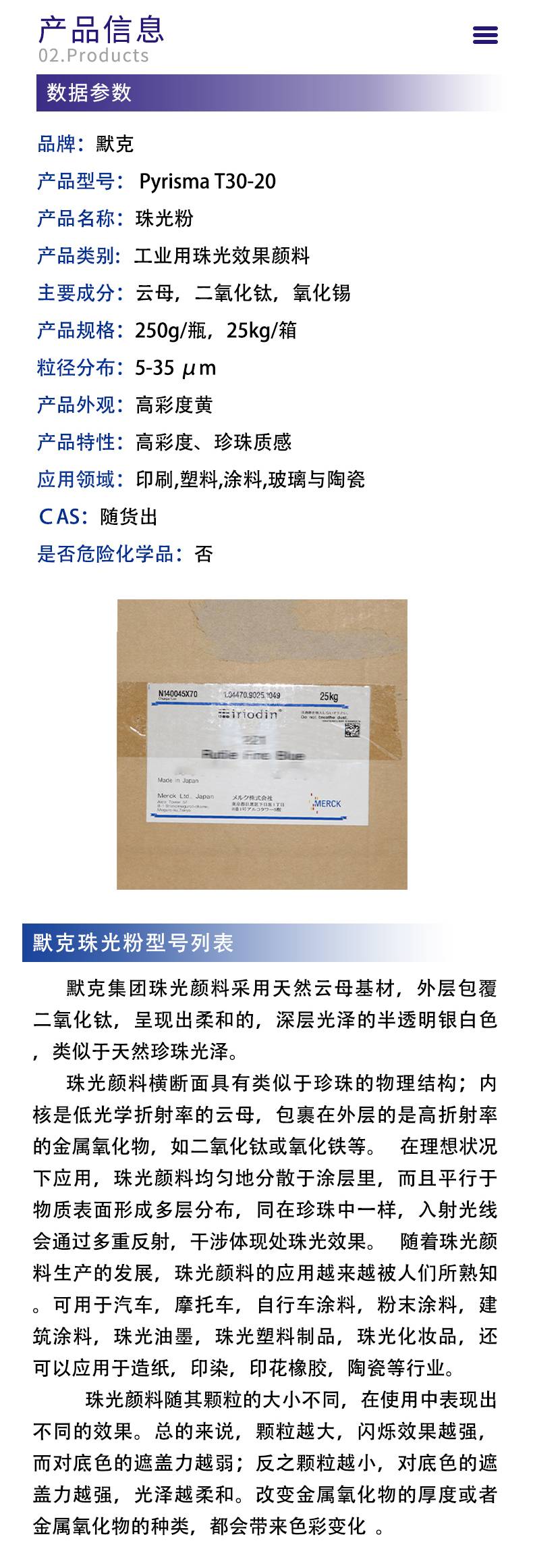 默克珠光粉Pyrisma T30-20珍珠金黄高纯度高彩度闪粉珠光颜料涂料