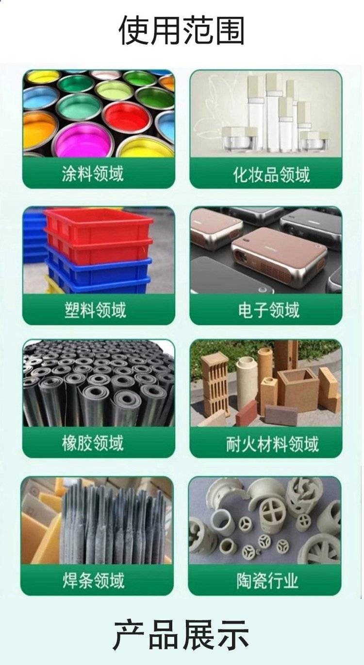 陶瓷,涂料,化妆品,塑料,油墨,皮革等