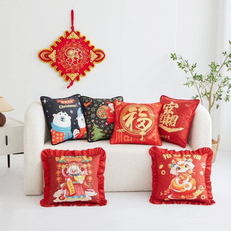 2025加厚天鹅绒圣诞节抱枕套双喜福字财神大红喜庆蛇年抱枕靠垫