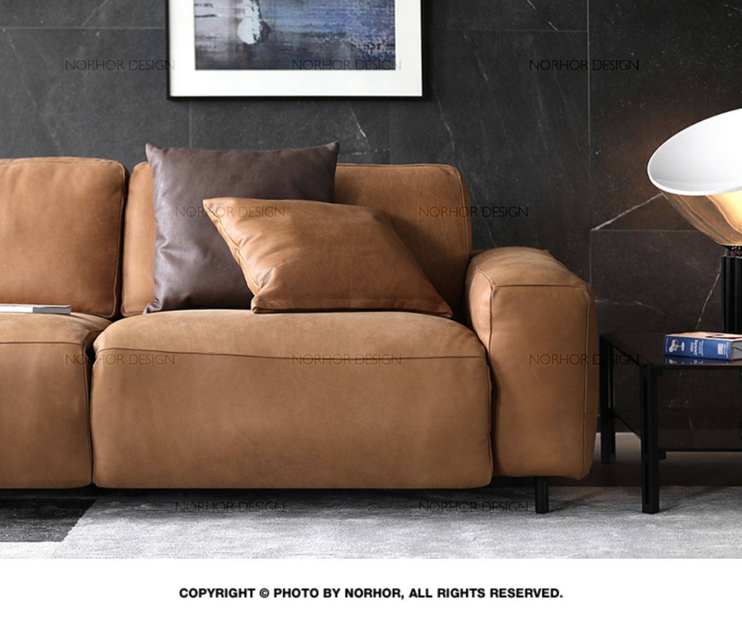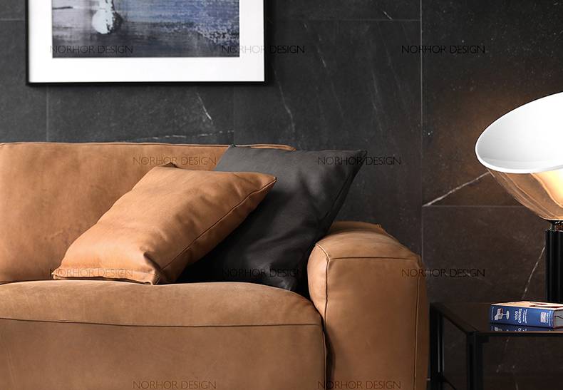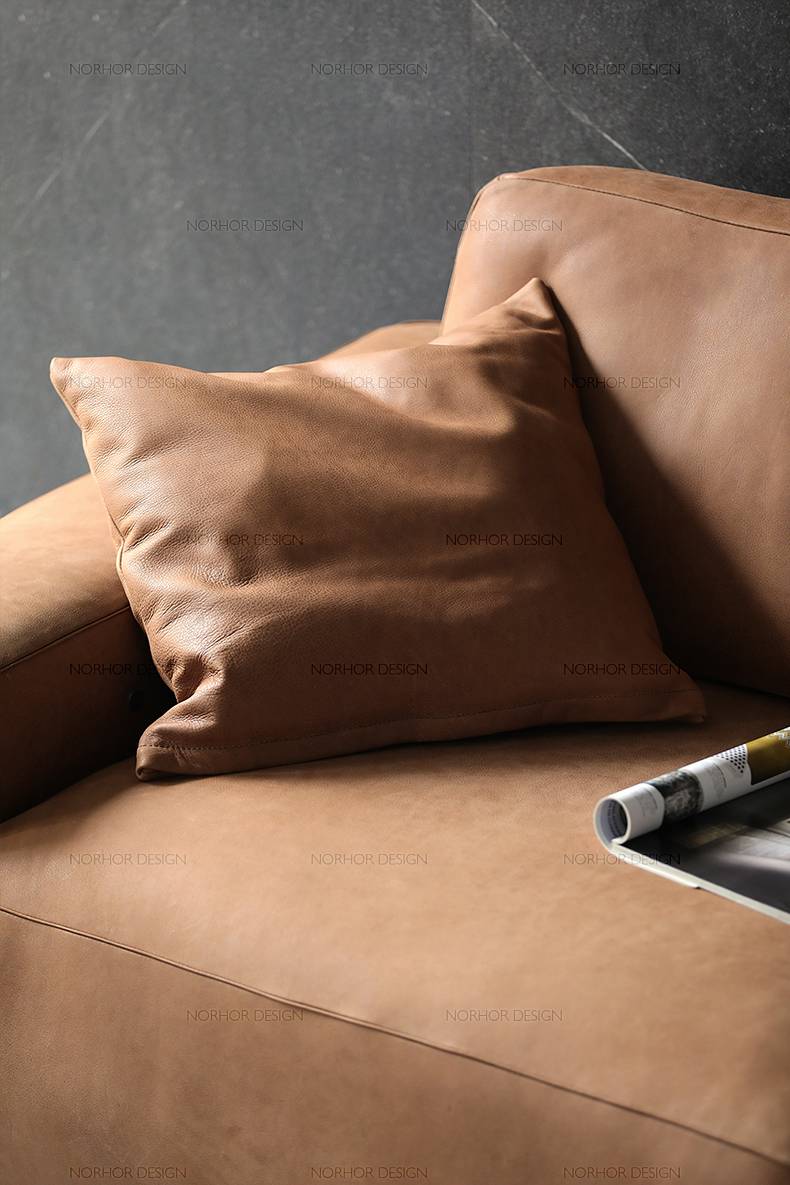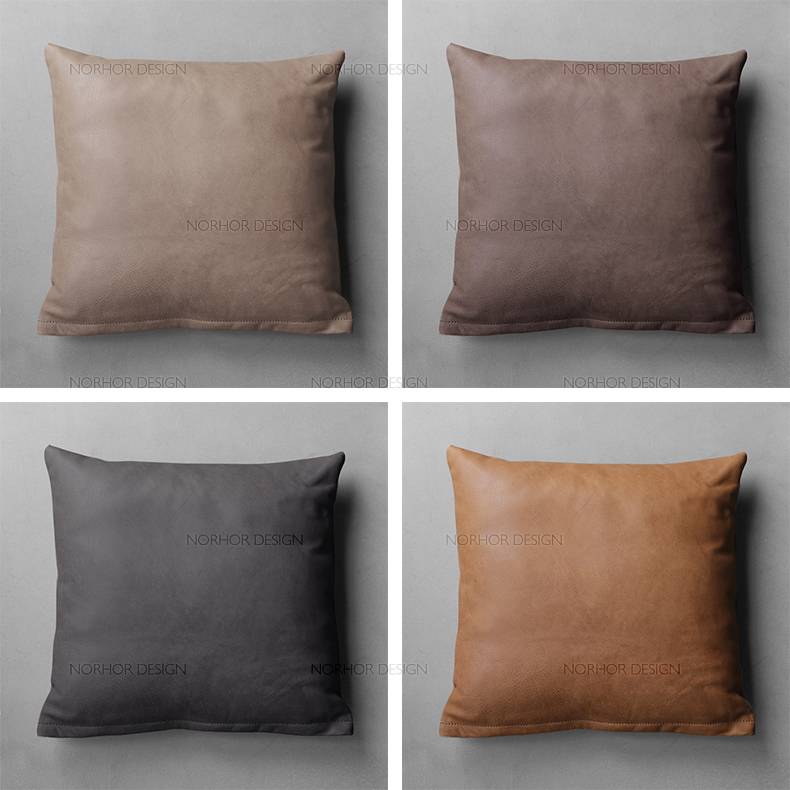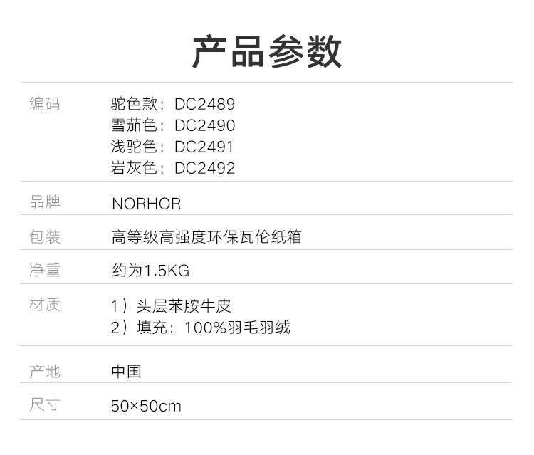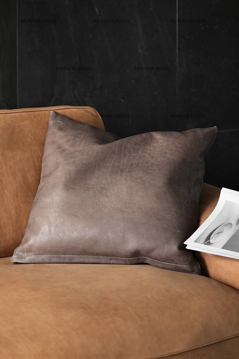 北欧表情NORHOR/进口头层牛皮/摩根迪真皮方形羽绒抱枕靠垫4色K