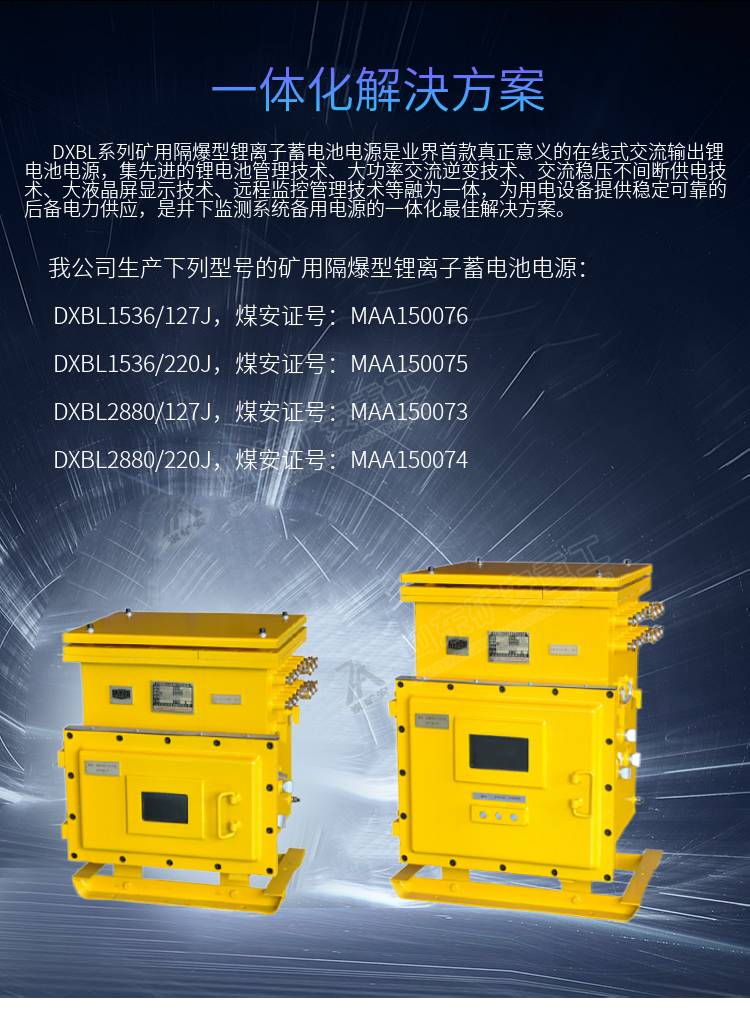 DXBL2880/127J矿用隔爆型锂离子蓄电池电源 交流逆变稳压输出127V