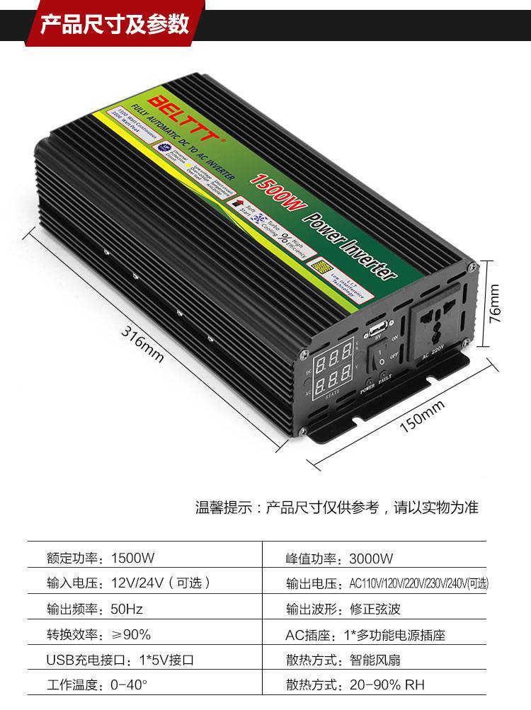 BEM1500L双显修正波逆变器 单相稳压电源 输出过载保护 支持定制
