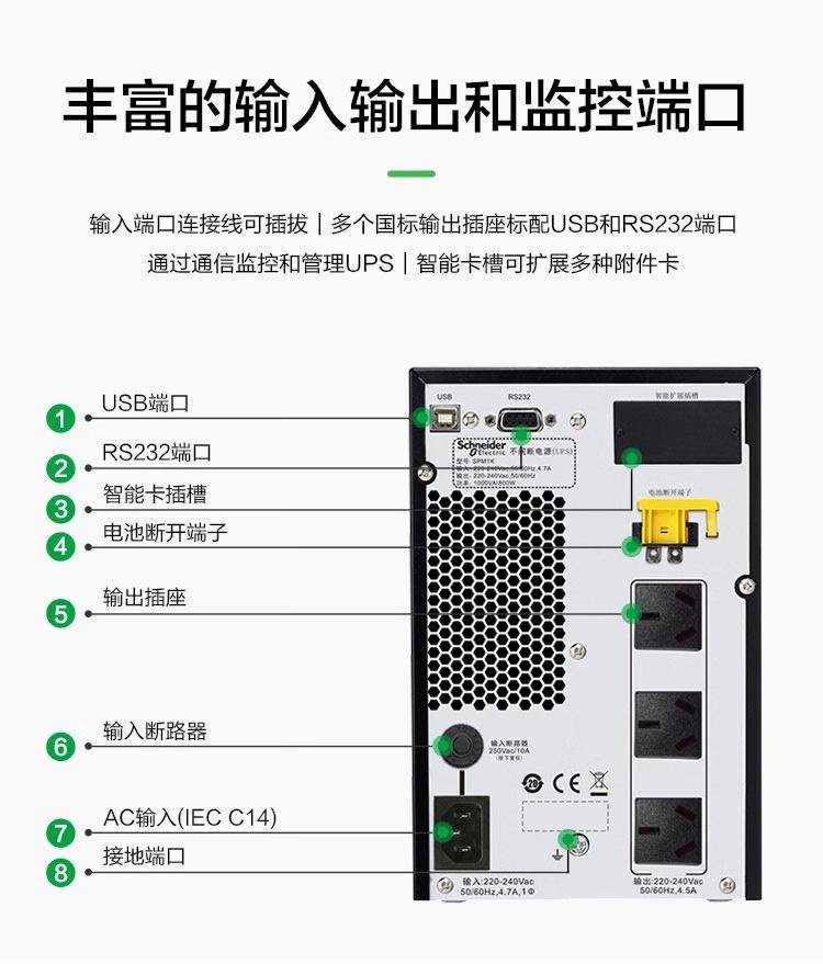 施耐德SPRM10KL 机架式在线式UPS不间断电源10KVA 8000W 稳压逆变