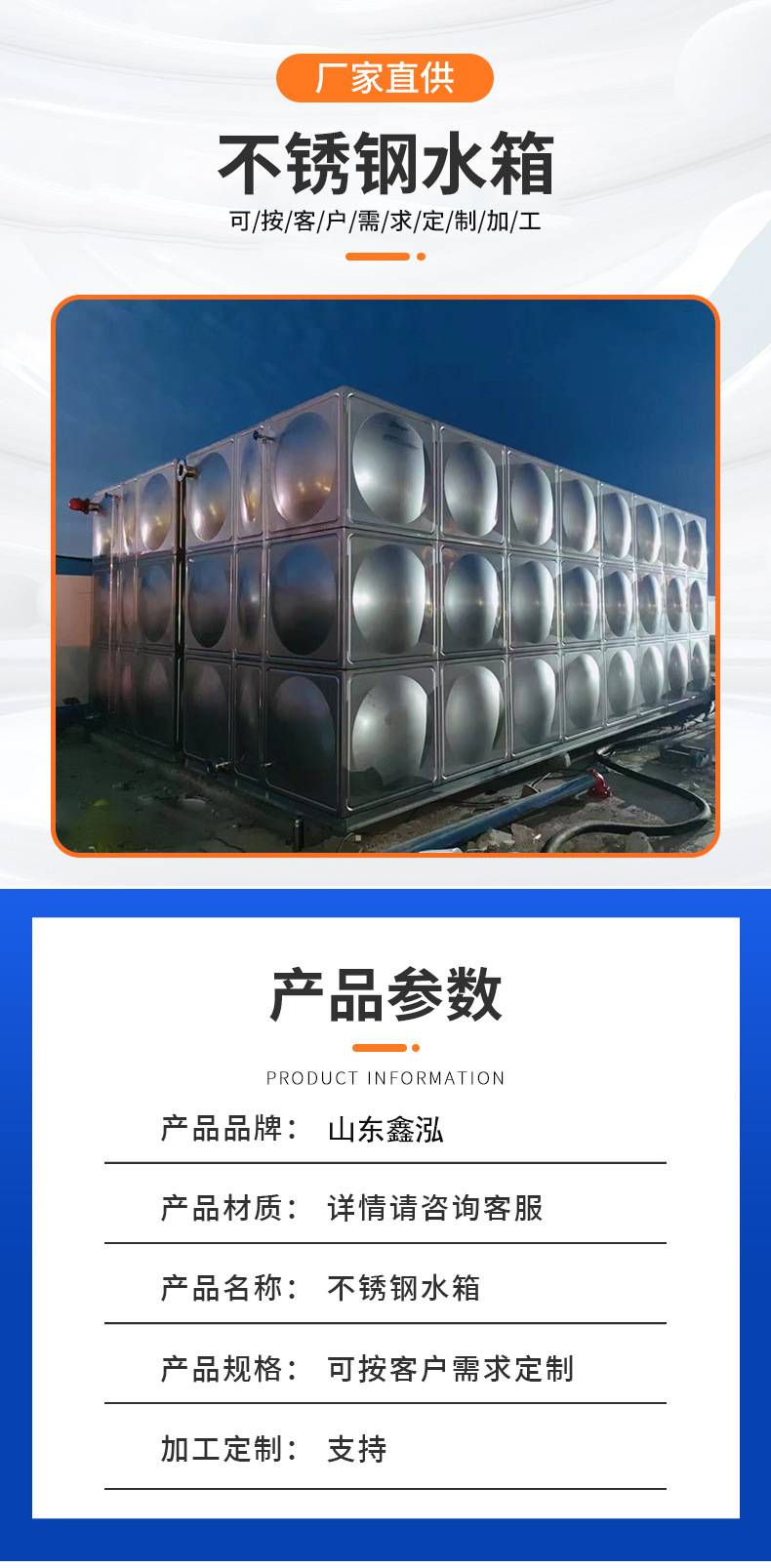 60吨不锈钢水箱 食品级消防水池 规格齐全 支持定制
