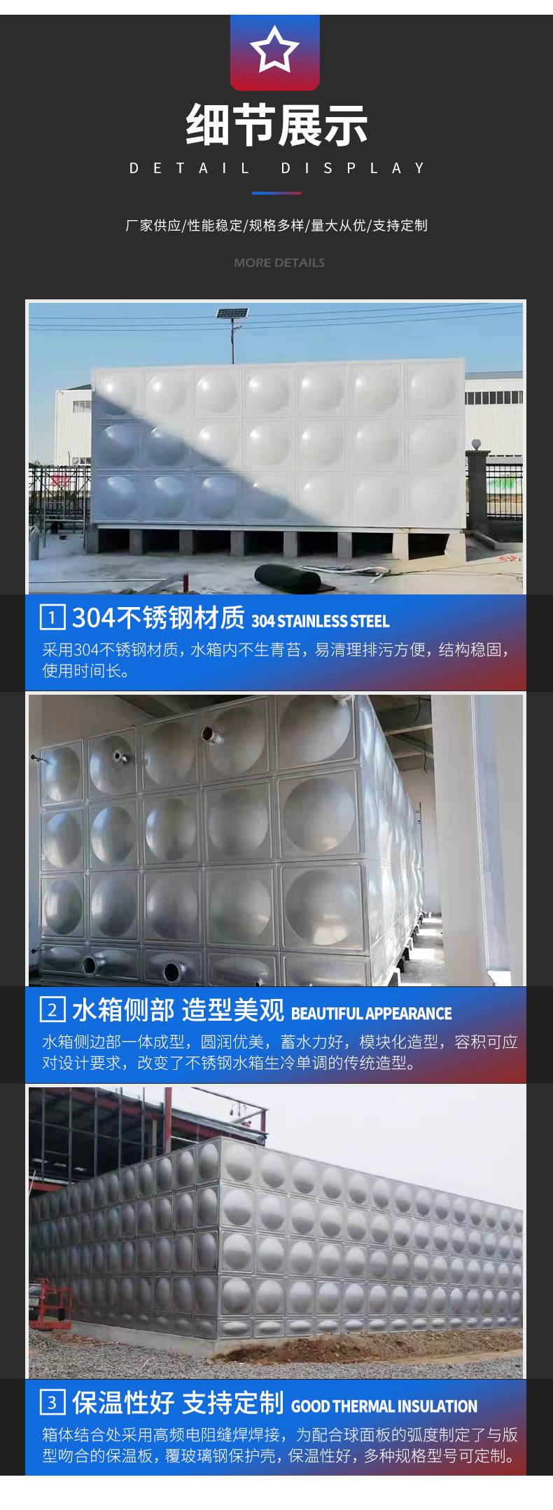 304不锈钢组合式消防水箱工业保温储水设备拼装生活饮用水箱