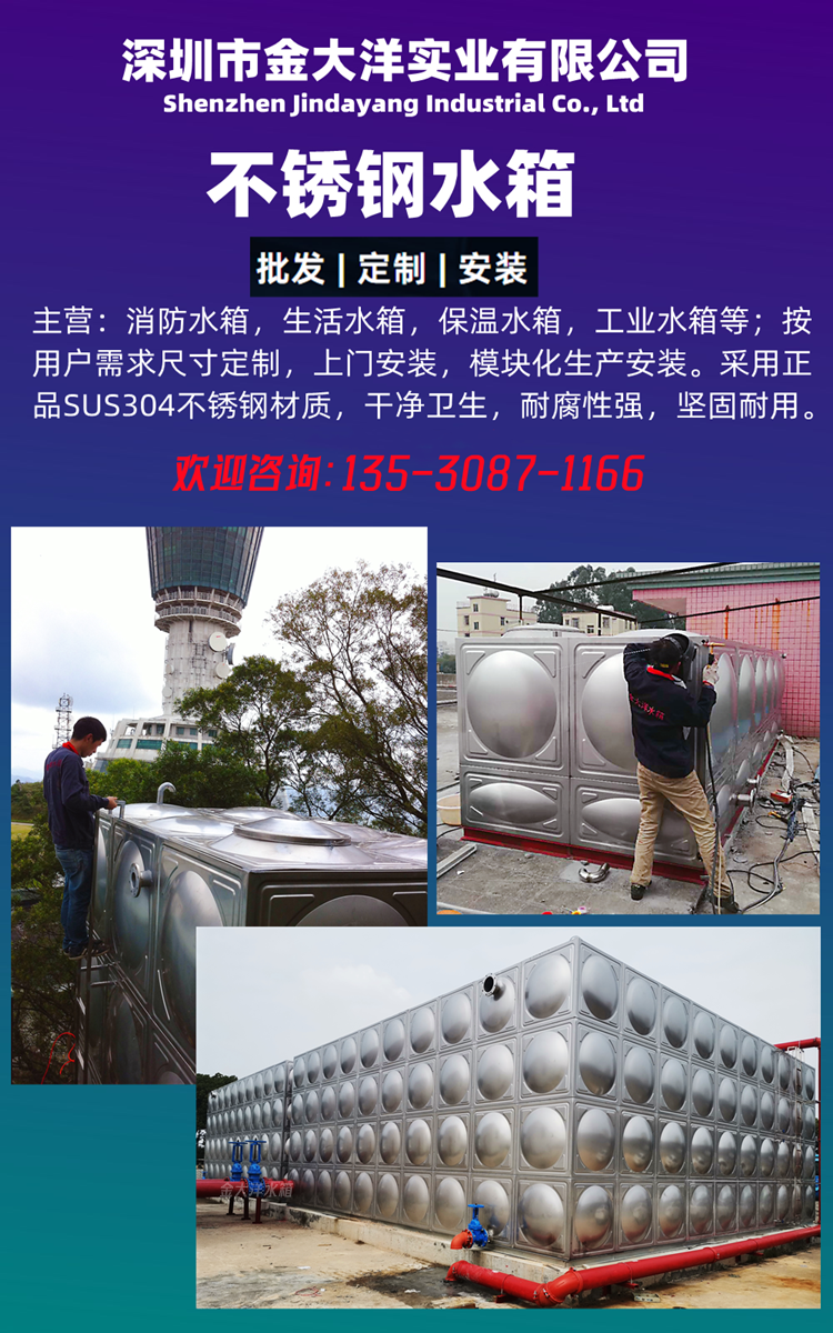 粤云浮不锈钢水箱 工厂供应 价优 消防生活箱按需定制 保修二年