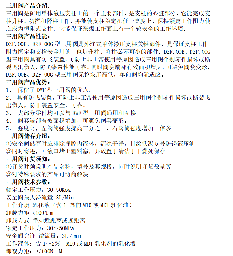 华矿重工 卸载力矩大 使用寿命长 性能稳定 矿用三用阀FSW1.6/40
