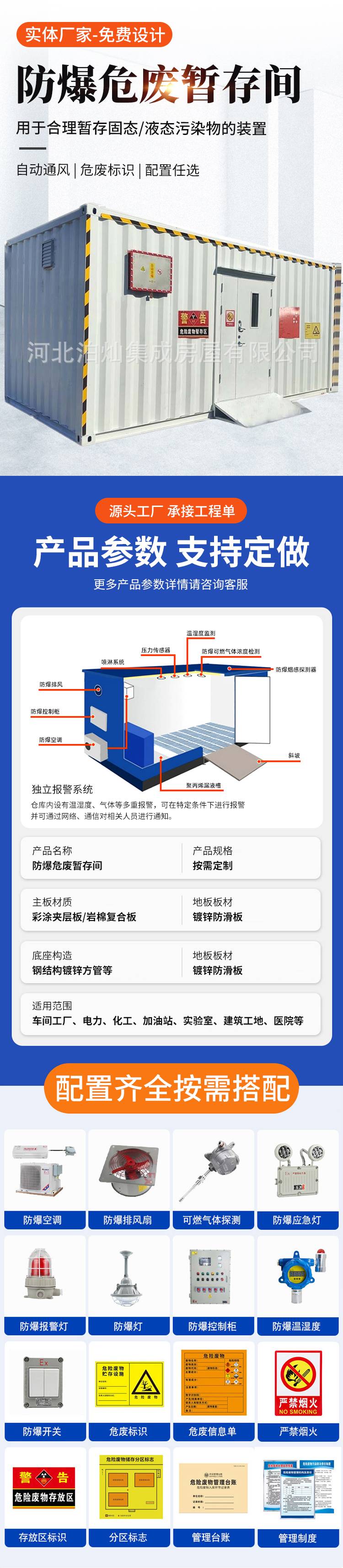 实验室废弃物储存间厂家生产 集装箱防爆危废间助力环评 泊灿定制