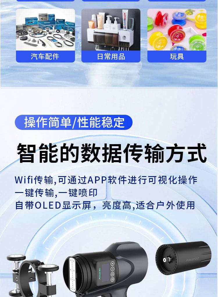 Wifi传输,可通过APP软件进行可视化操作,一键传输,一键喷印