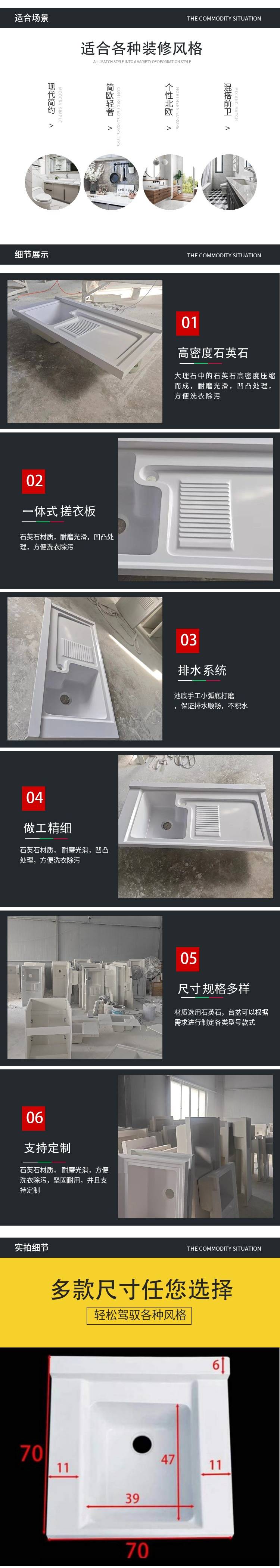 洗衣机柜子石英石台面带搓衣板水池阳台组合一体盆伴侣