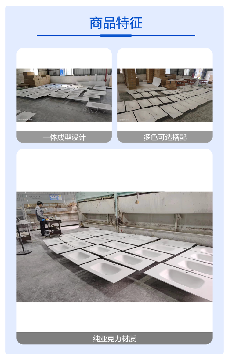 可丽耐一体盆 浴室台盆 热弯一体成型 款式多样