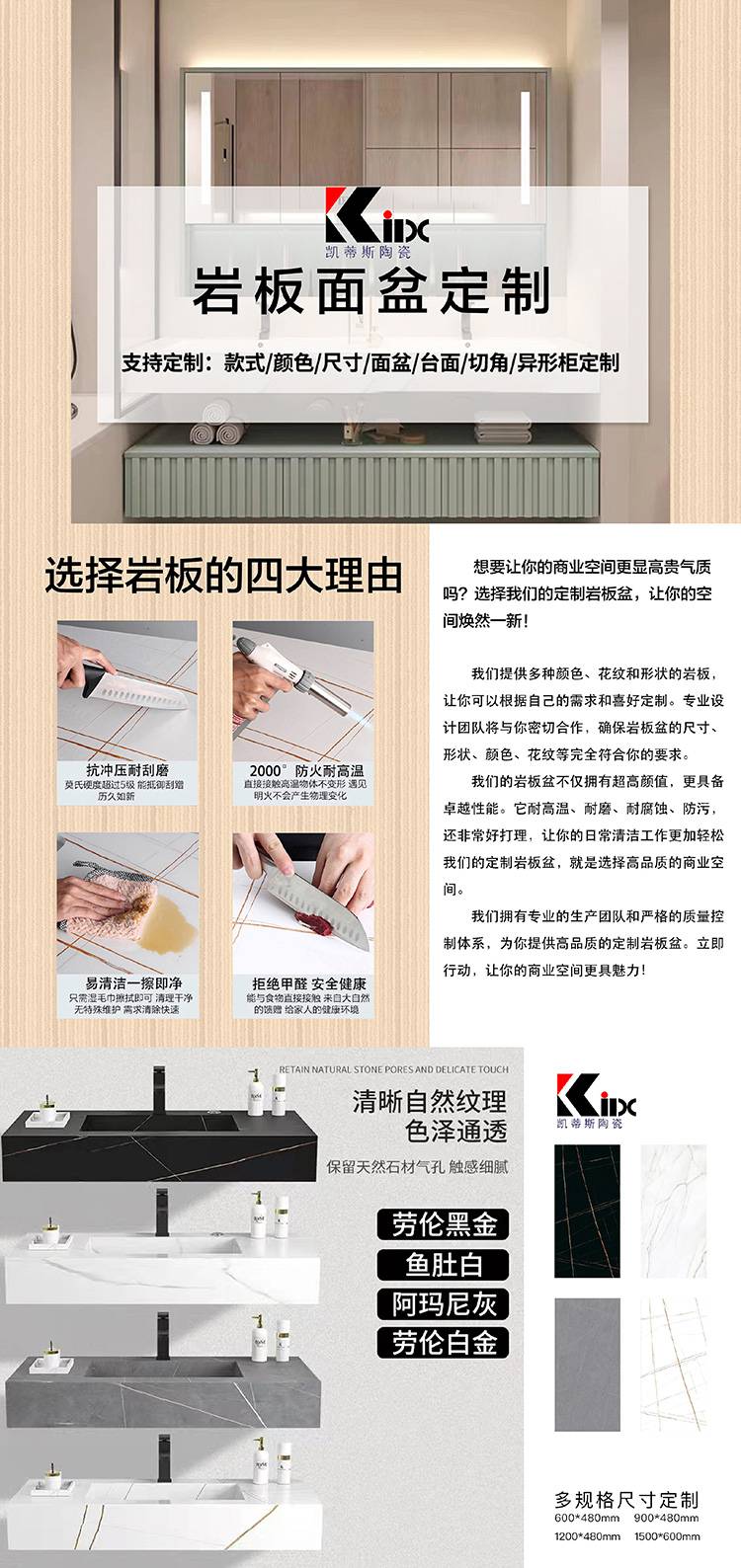 岩板一体盆 家用卫生间洗漱台 款式多样 承接工程 规格全