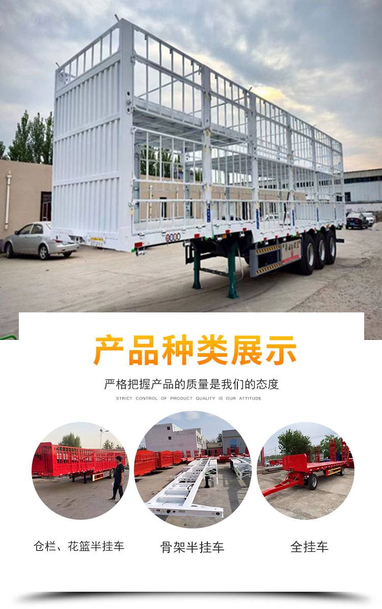 轻量化仓栏半挂车 鹅颈仓栅式运输车 13米轻型自卸车