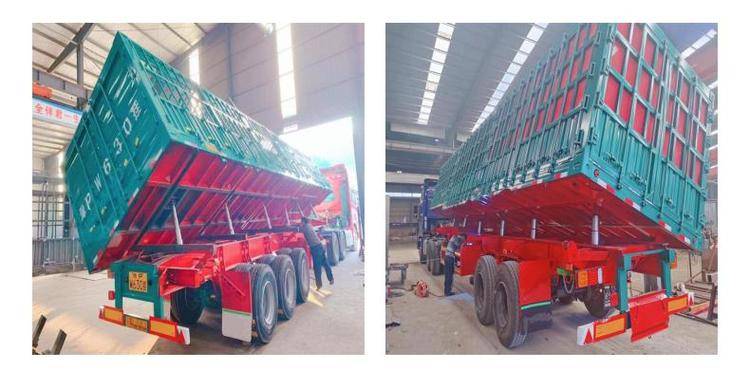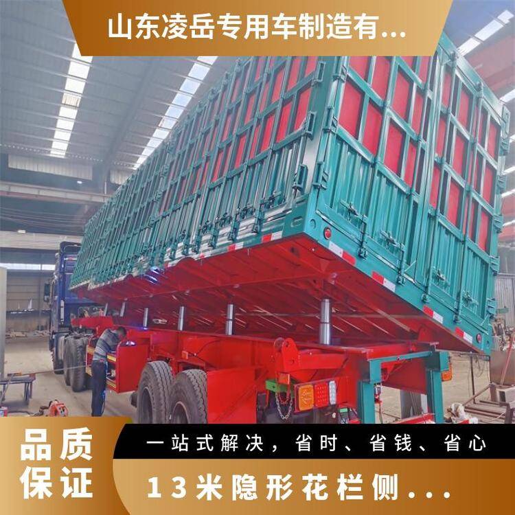 13米隐形仓栏侧翻自卸车 60吨骨架式偏翻半挂车 举升力强