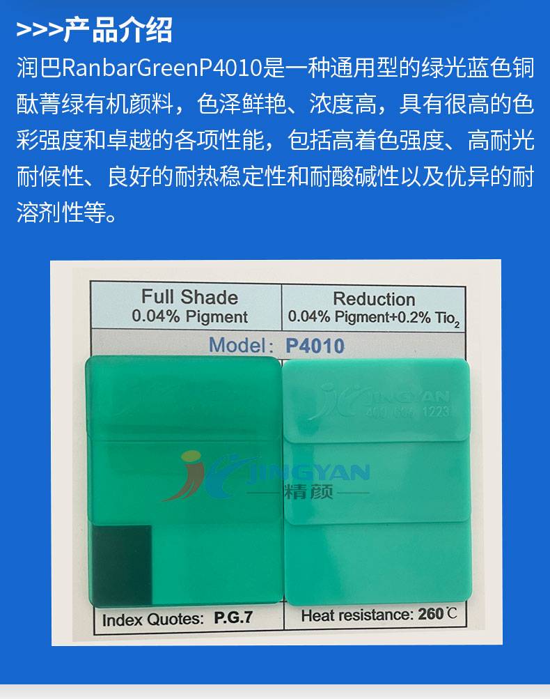 润巴半透明酞菁颜料绿7通用型P4010有机颜料蓝光绿色粉