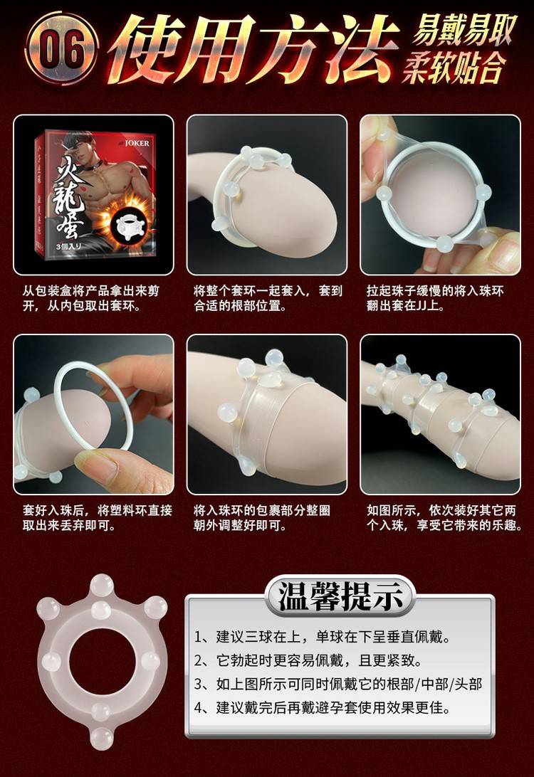 JOKER入珠环 3珠5珠8珠男用带珠锁精环羊眼火龙蛋G点环1盒内装3套