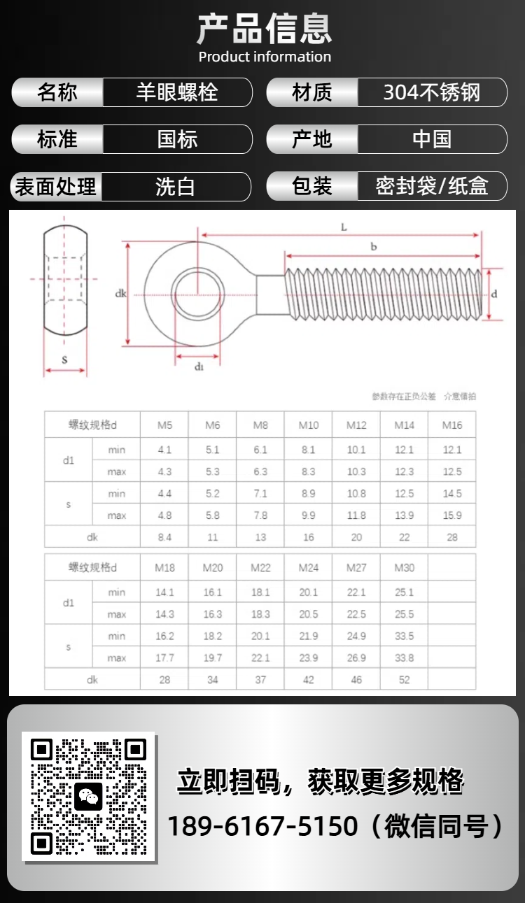 羊眼螺栓不锈钢材质 标准尺寸 专业生产厂家 百科