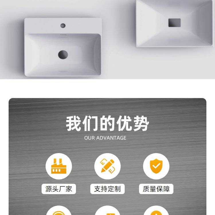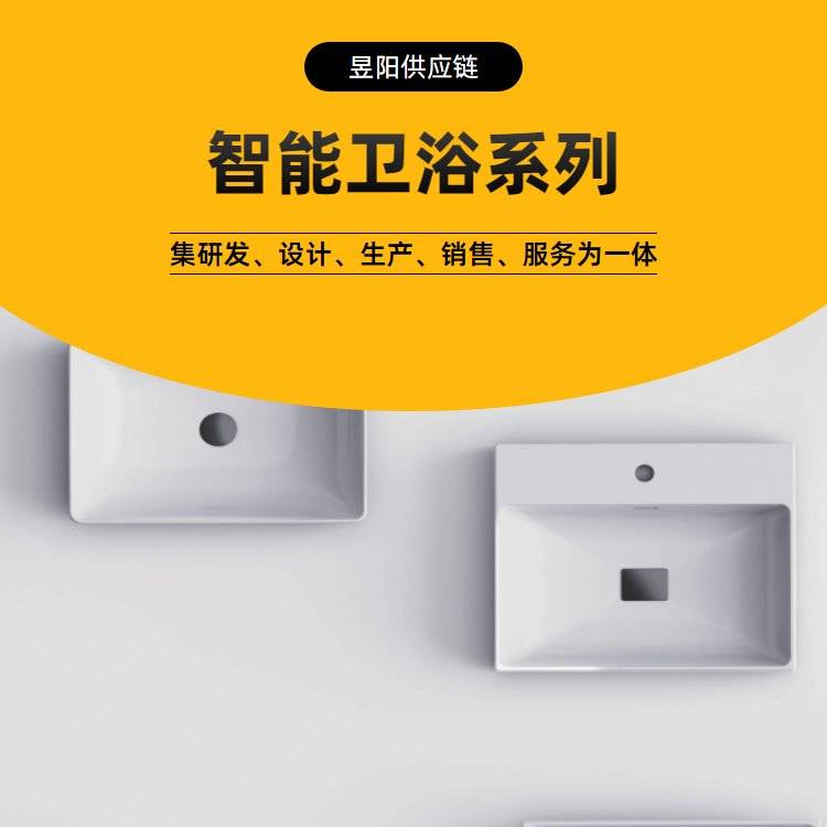 白色方形昱阳供应链国产宇西人造石独立式一体洗手台写字楼厕所洗脸盆