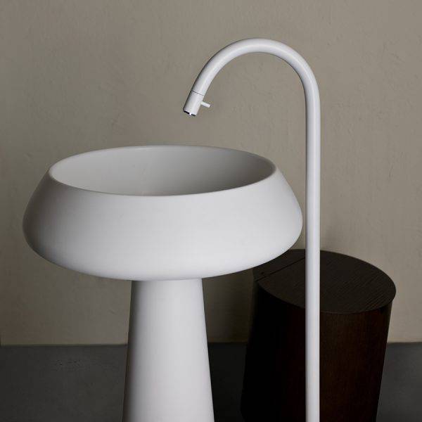 Agape台盆底座水槽采用锥形丙烯酸固体表面底座,这款现代螺旋设计底座水槽预钻有一个水龙头孔。