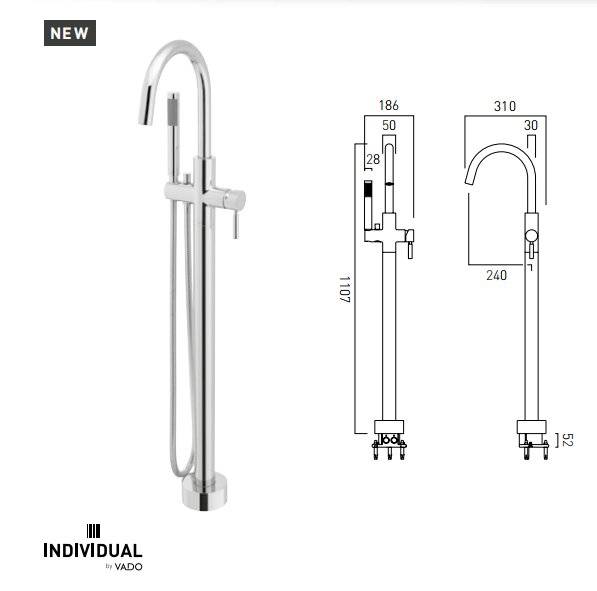 VADO瓦渡浴缸边独立式水龙头ORI-233A入墙式洗手盆龙头