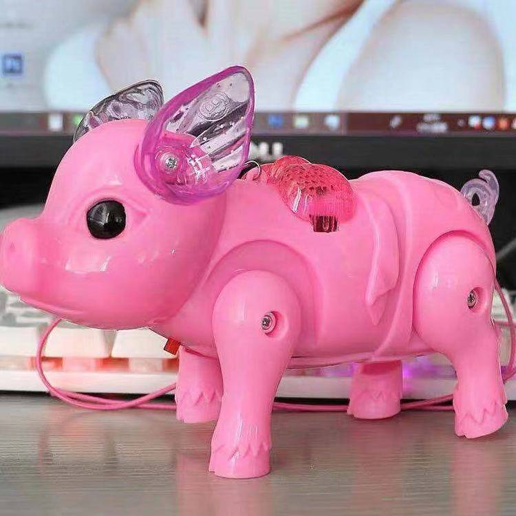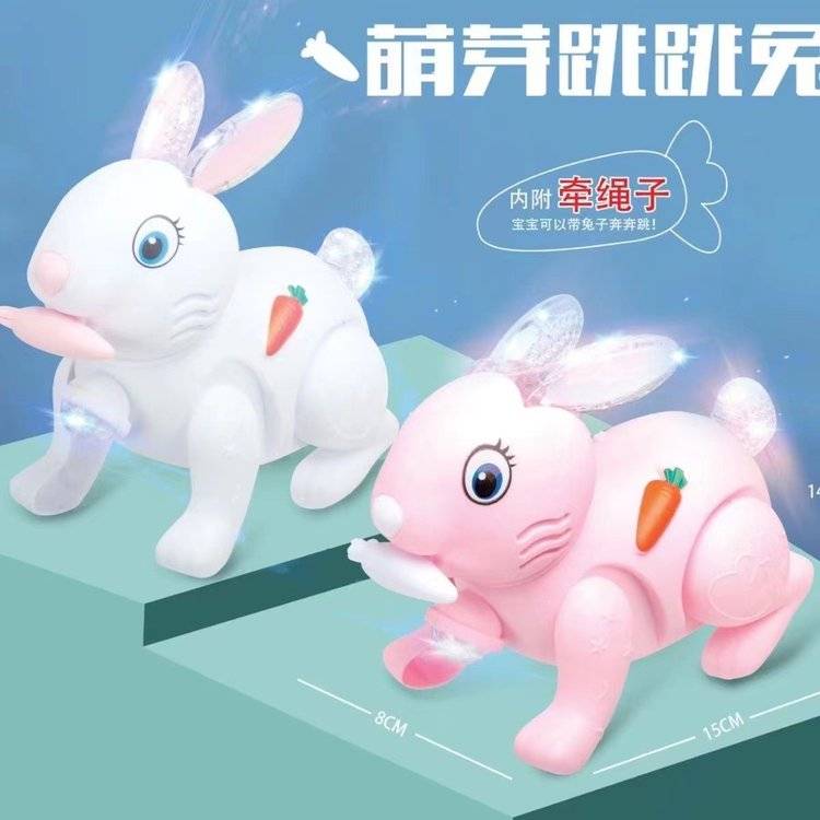 新款地摊玩具牵绳兔子电动跳跳兔卡通动物玩偶蹦蹦兔会唱歌发光兔