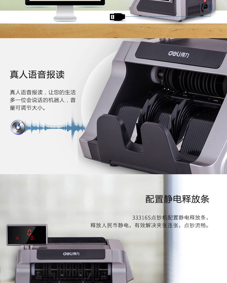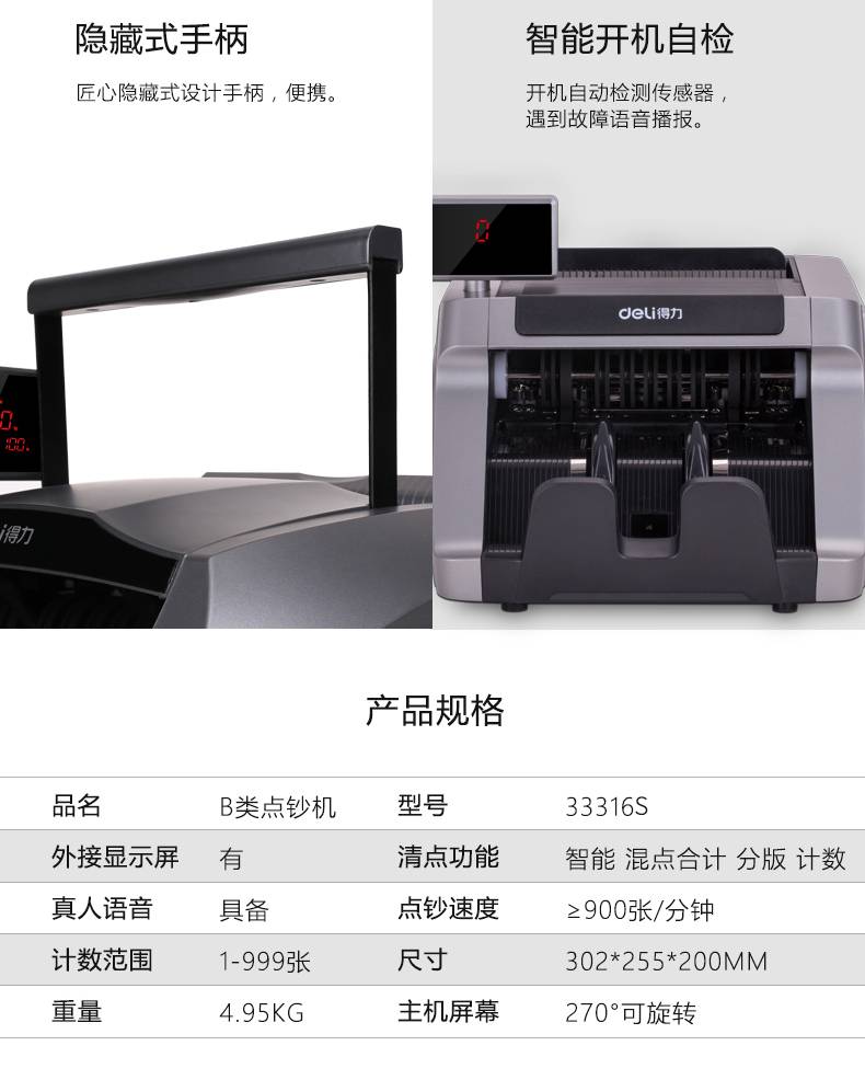 得力33316s点钞机支持2019新币小型办公家用便携式B类验钞机数钞