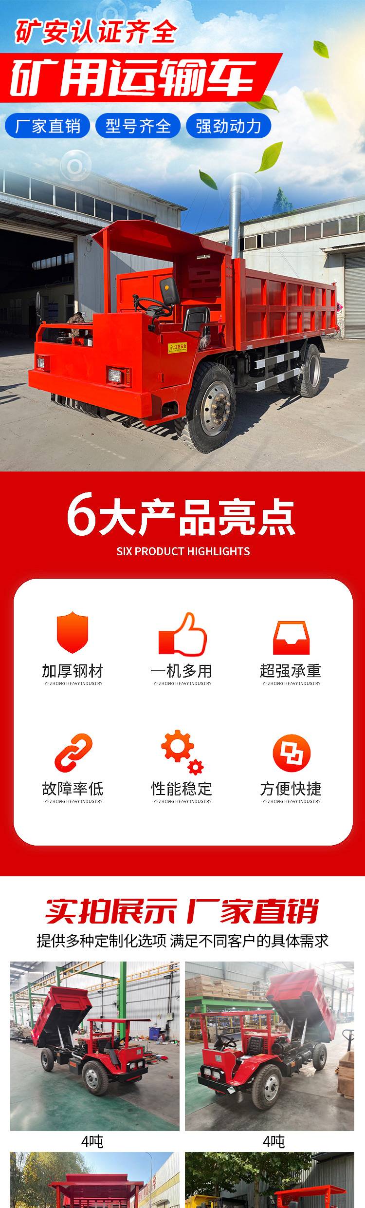 辉矿 4-20吨 矿用四不像自卸车 四驱四不像车 加高加厚箱体 证件齐全