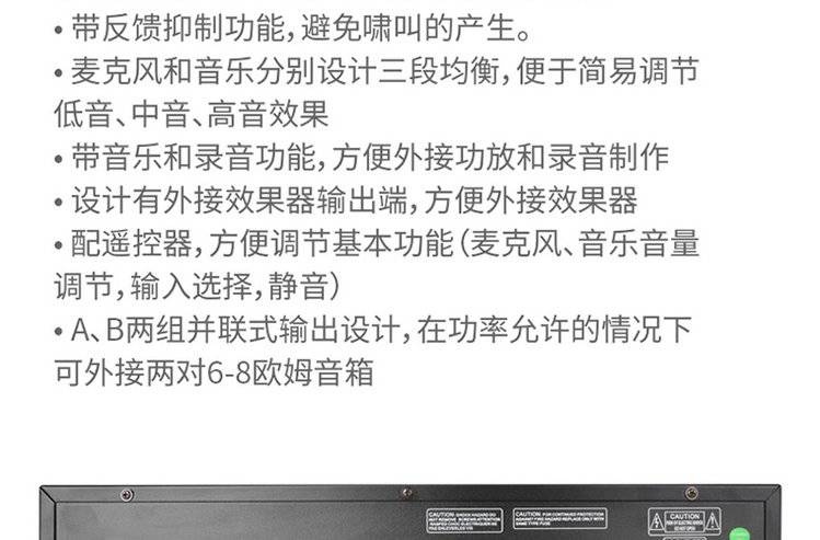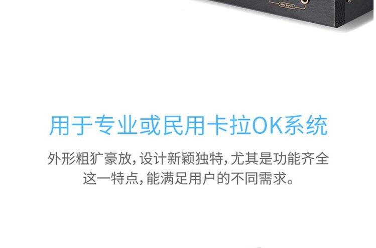 EKAX系列功放主要应用于专业或民用卡拉OK系统,在长时间、大功率状态工作时能稳定输出,具有耐潮湿、耐高温、耐干燥、耐不稳电压等严谨的性能特征。外形粗犷豪放,设计新颖独特,尤其是功能齐全这一特点,能满足用户的不同需求。