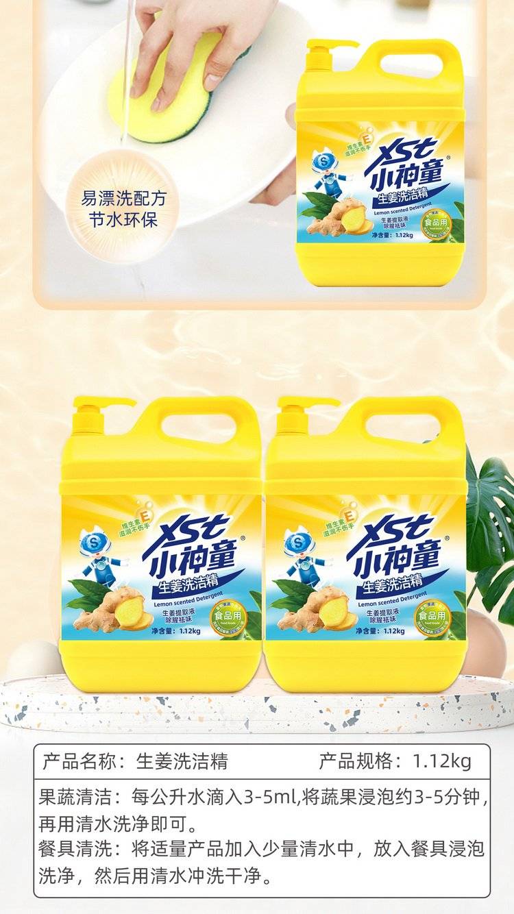 小神童 家用清洁去油去污不伤手生姜洗洁精1.12kg 新款