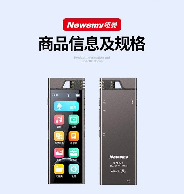 纽曼 大屏录音笔 V39 雅物售楼礼品 商务伴手礼 MY-HTZN-(T)-97