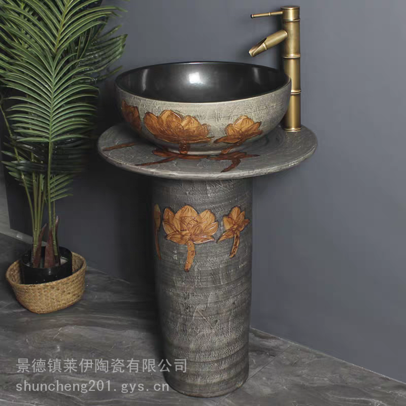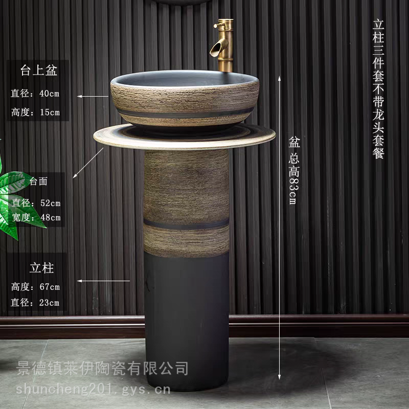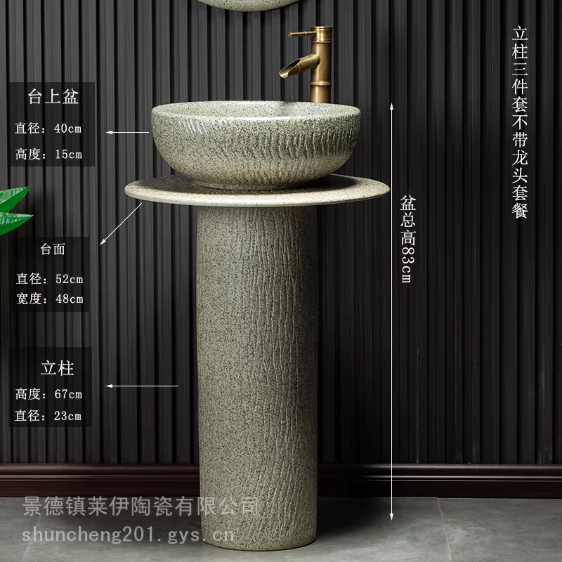 名宿特色洗手陶瓷水盆 复古庭院户外陶瓷立柱盆台上洗手盆