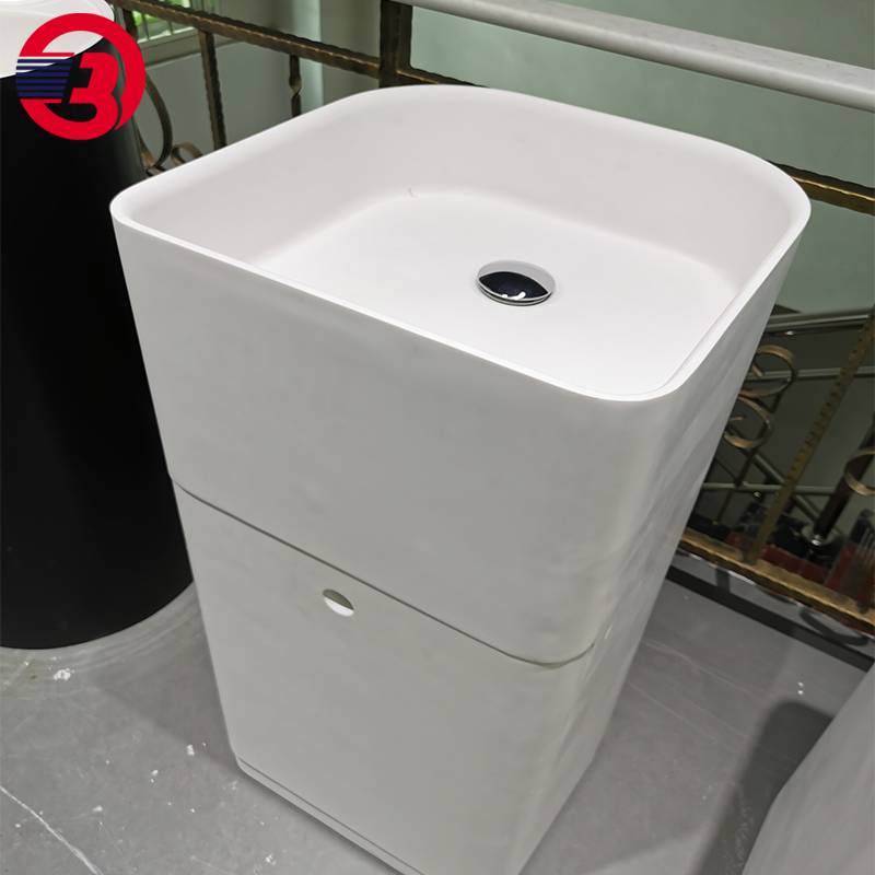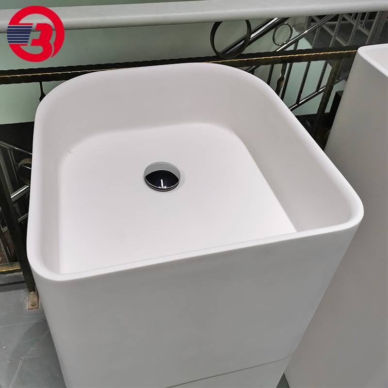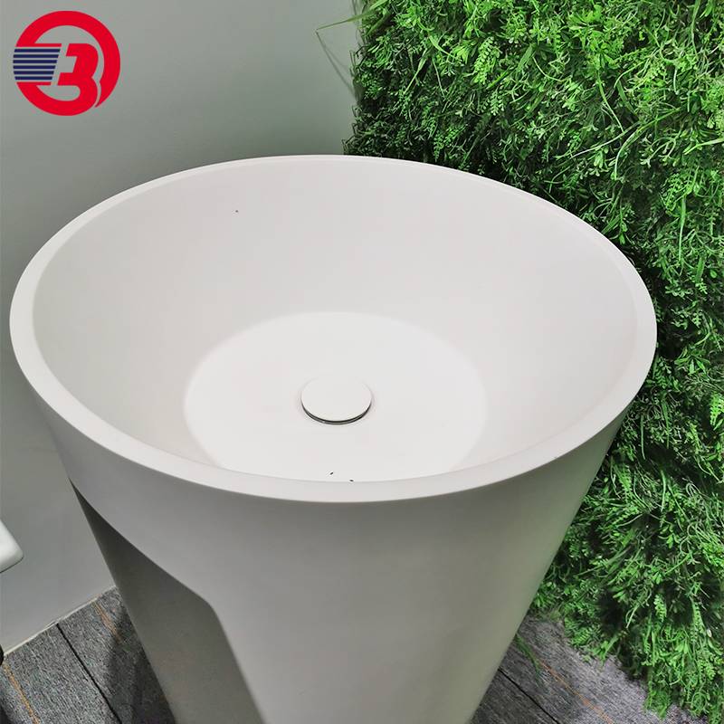 客栈酒店阳台卫生间落地立柱盆 人造石亚克力一体洗手盆