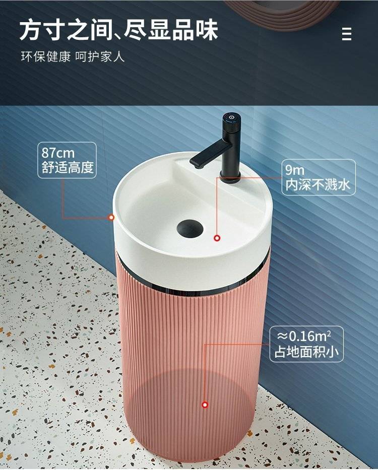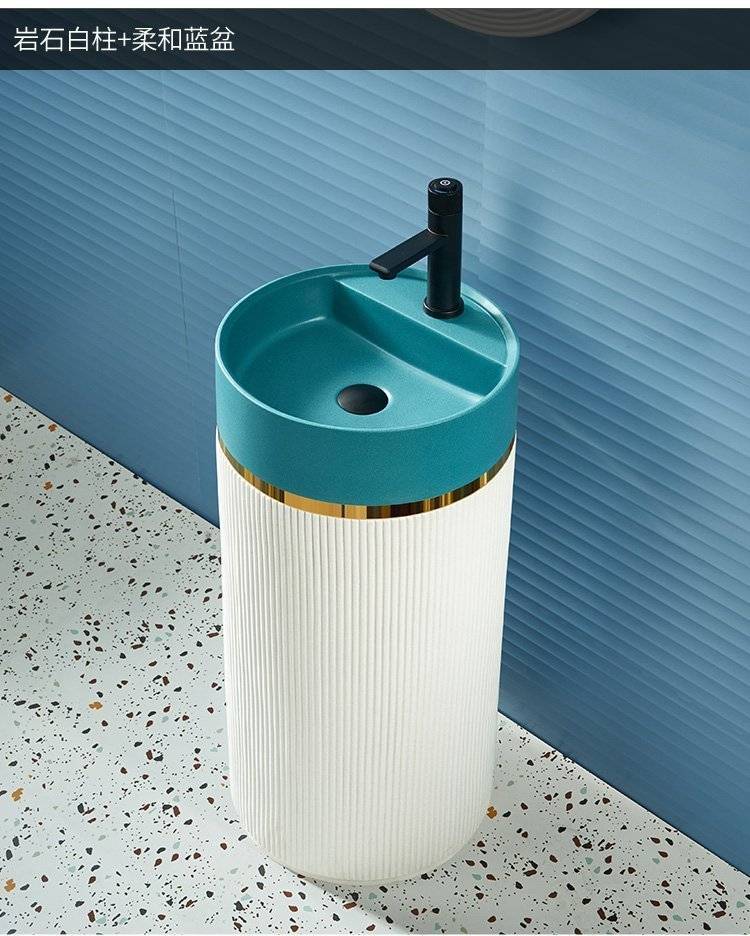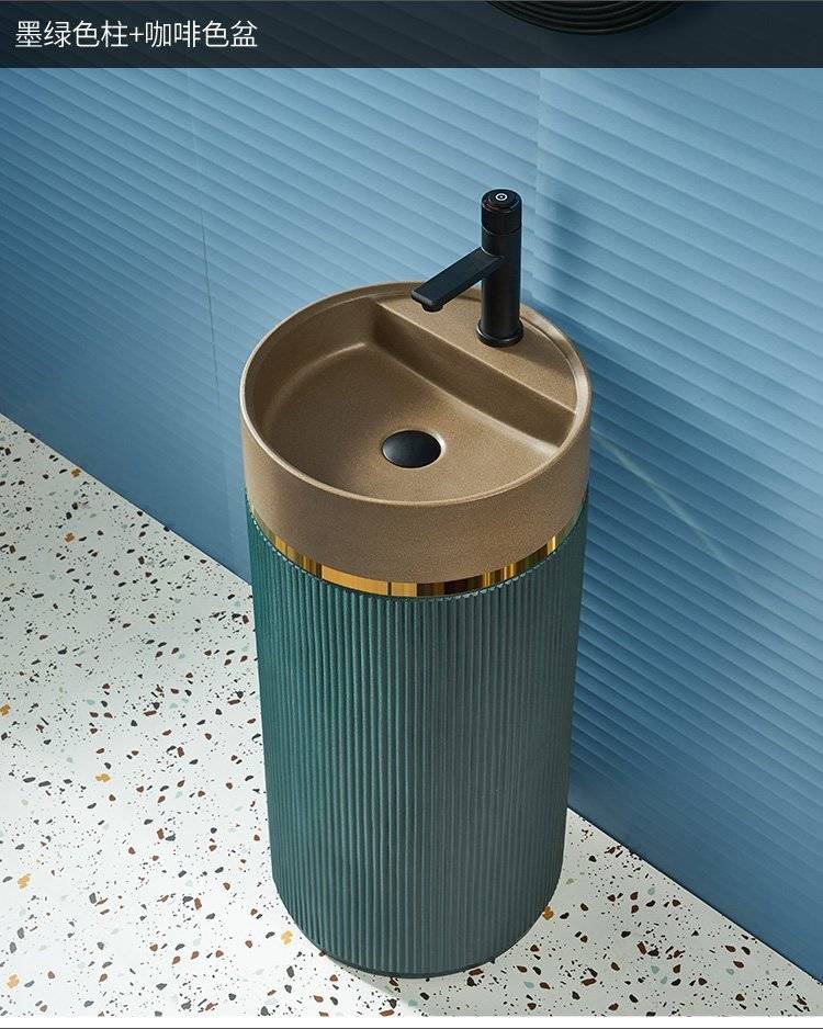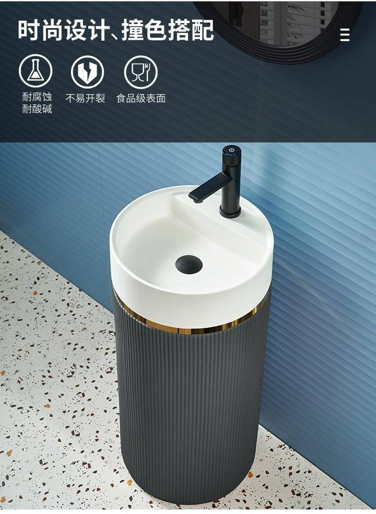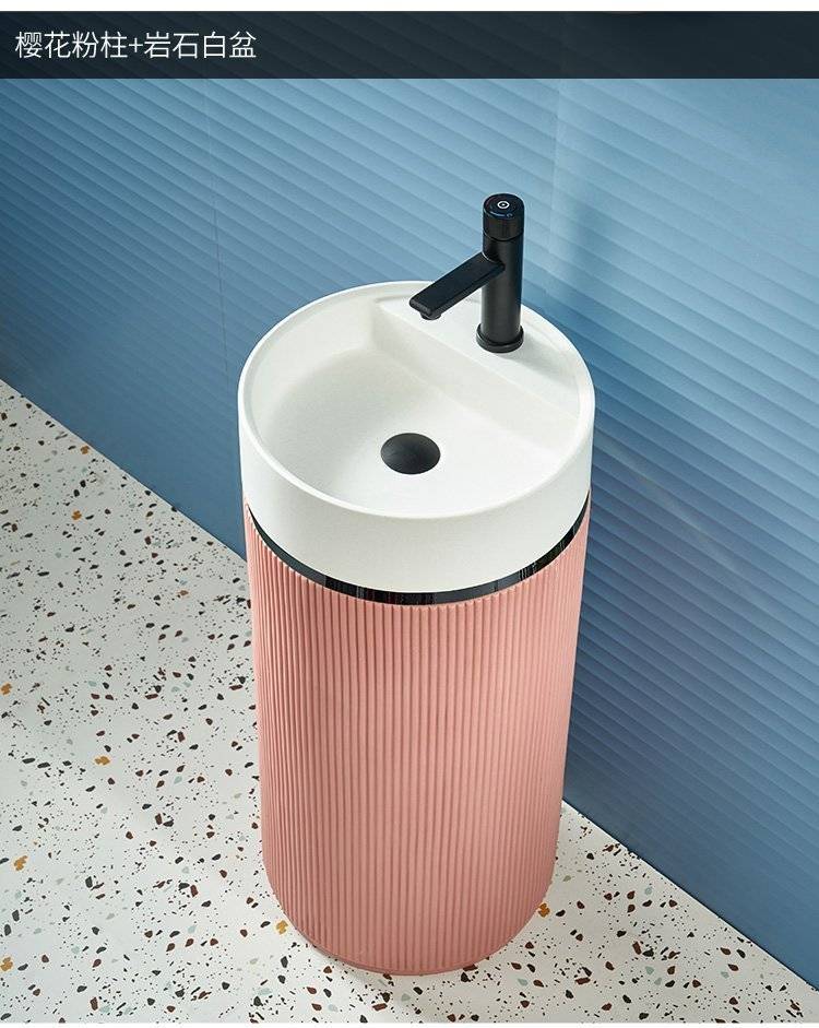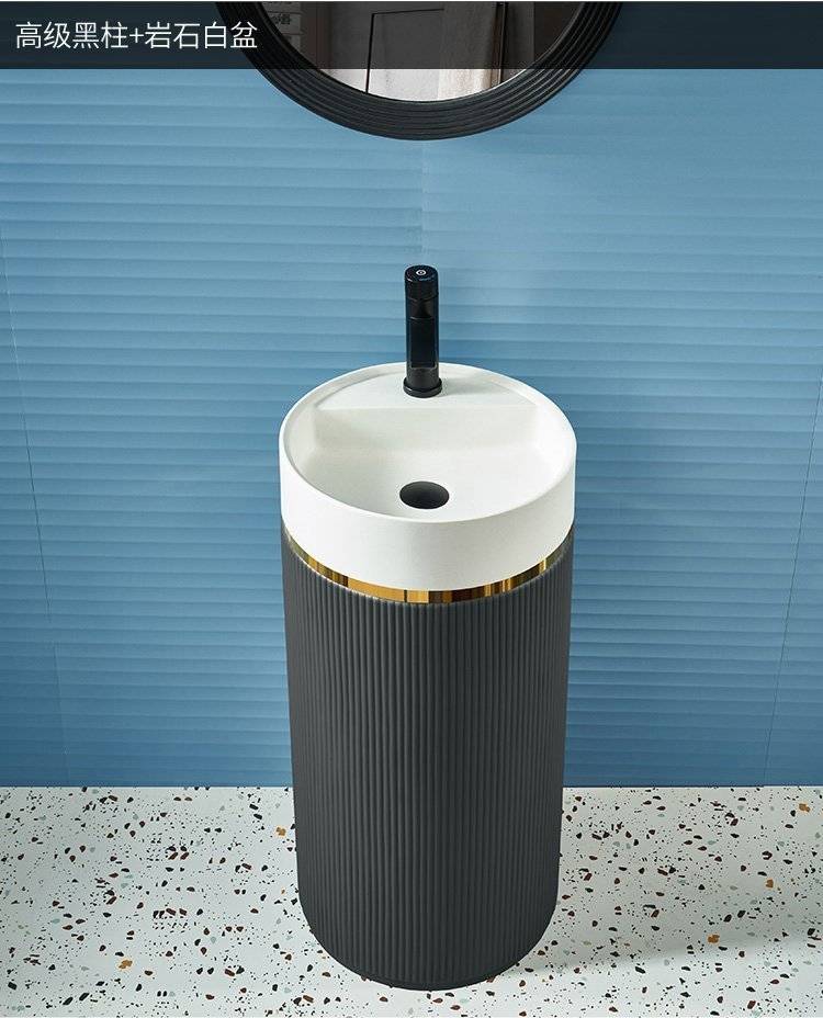 北欧岩板立柱盆体落地式轻奢艺术洗脸阳台工业风户外圆形洗手池