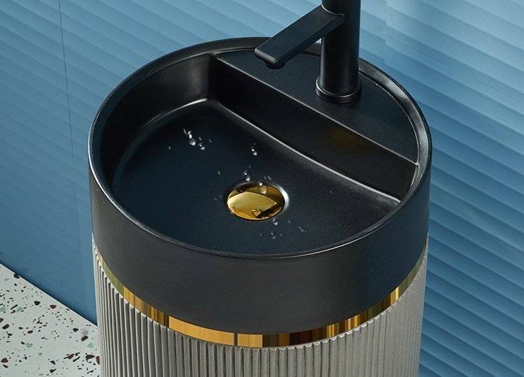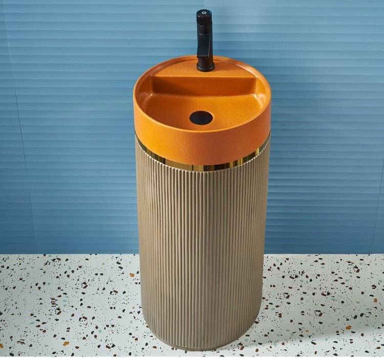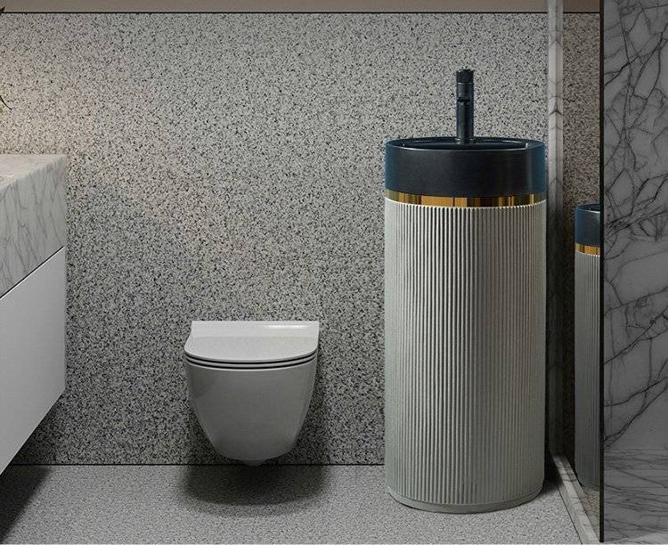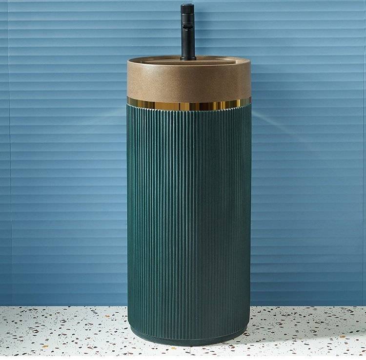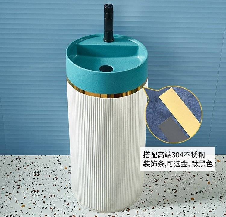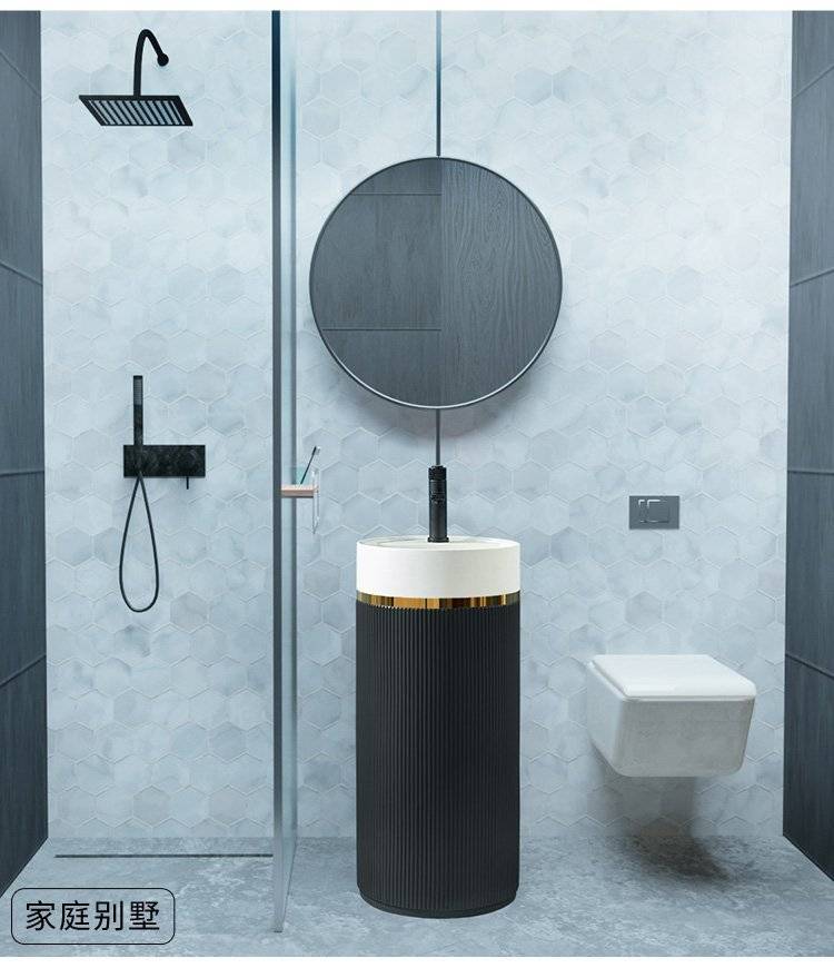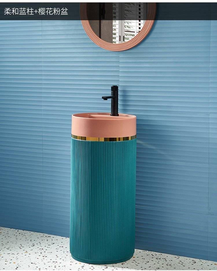 北欧岩板立柱盆体落地式轻奢艺术洗脸阳台工业风户外圆形洗手池