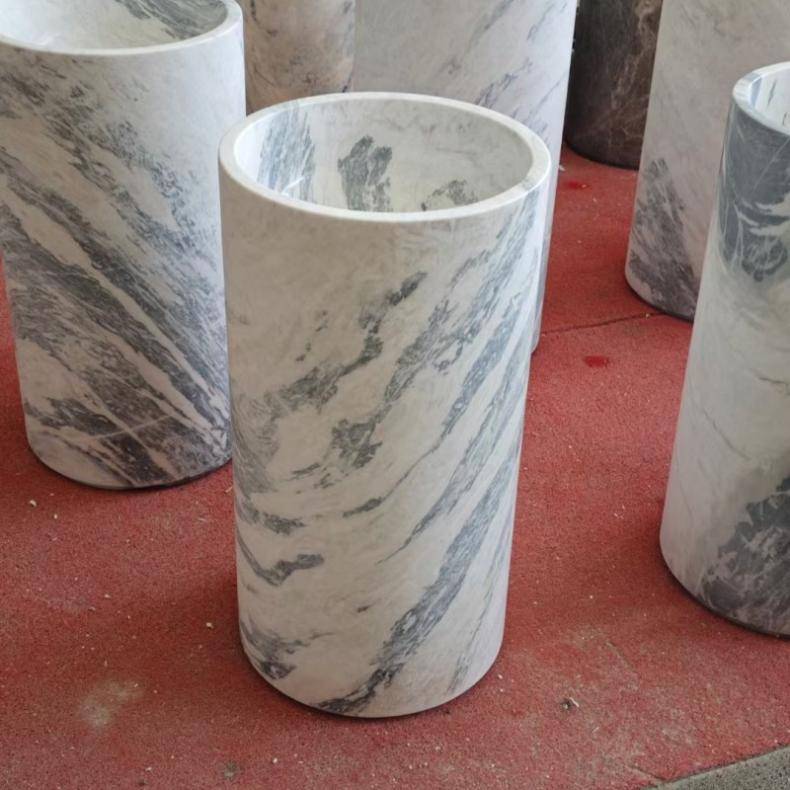 大理石立柱盆 落地式石材圆形洗手盆 酒店景区卫生间专用