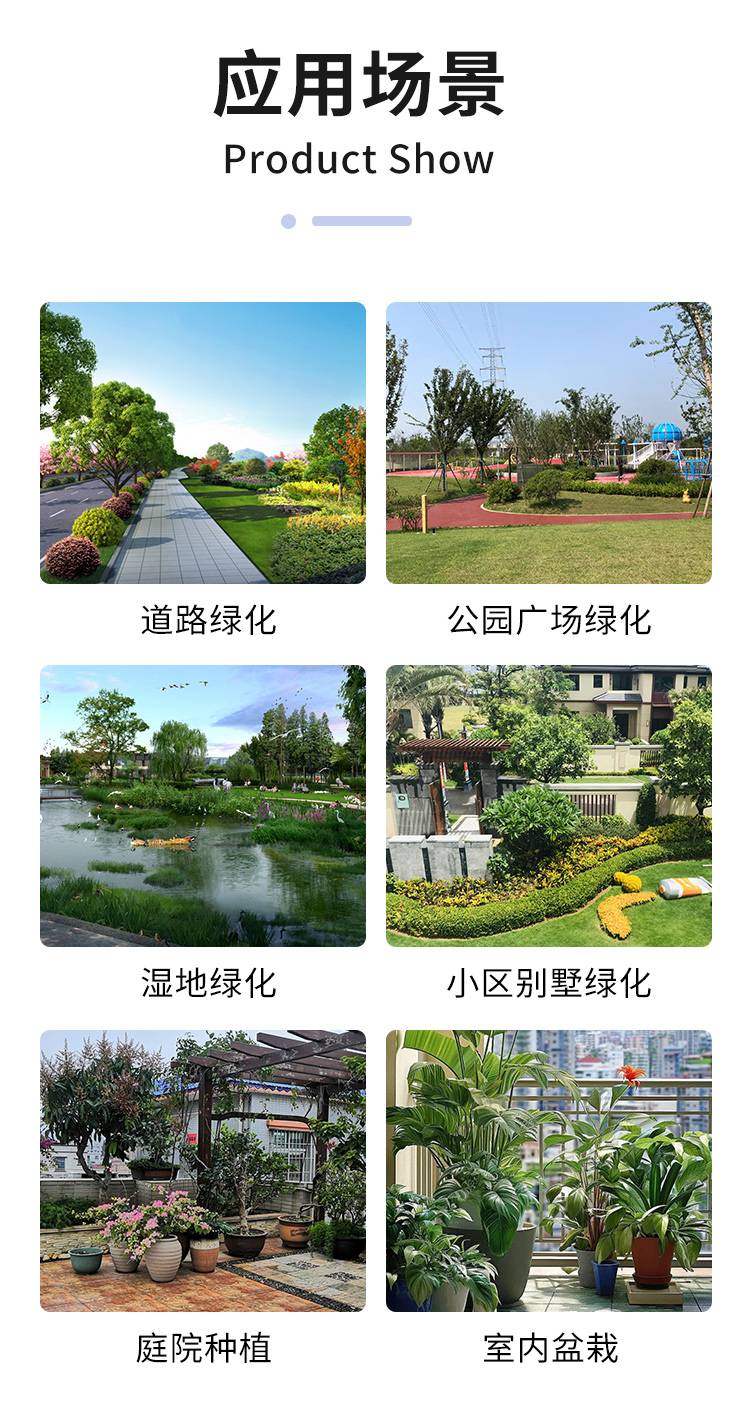 花坛,盆栽,护坡绿化,切花材料,花境,绿篱,地被,灌丛,湿地绿化