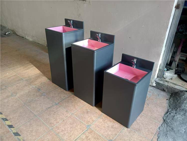 立柱盆阳台落地式洗脸盆户外公园景区304不锈钢一体彩色洗手盆