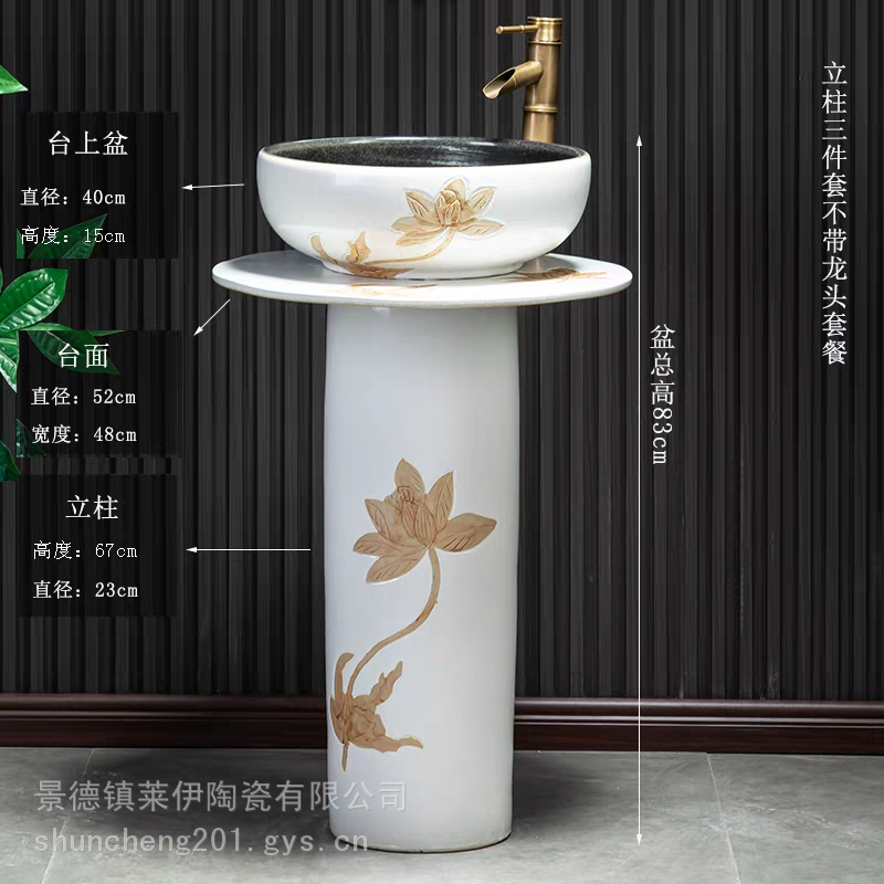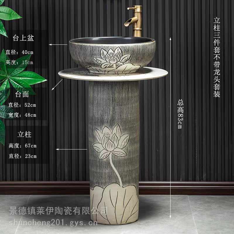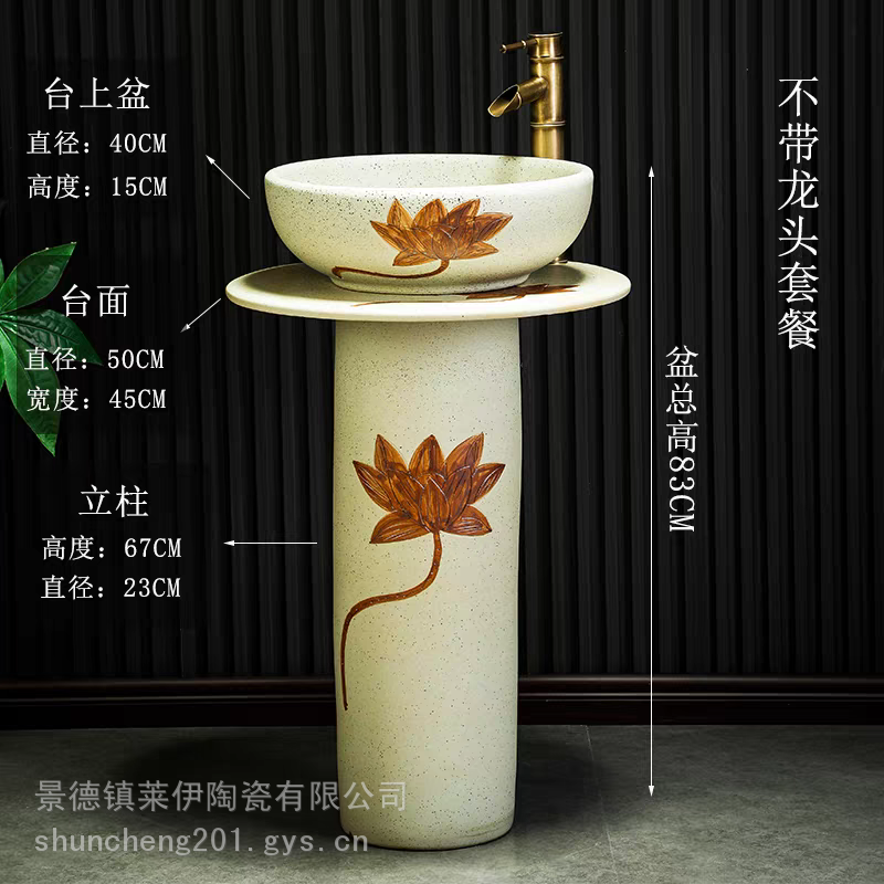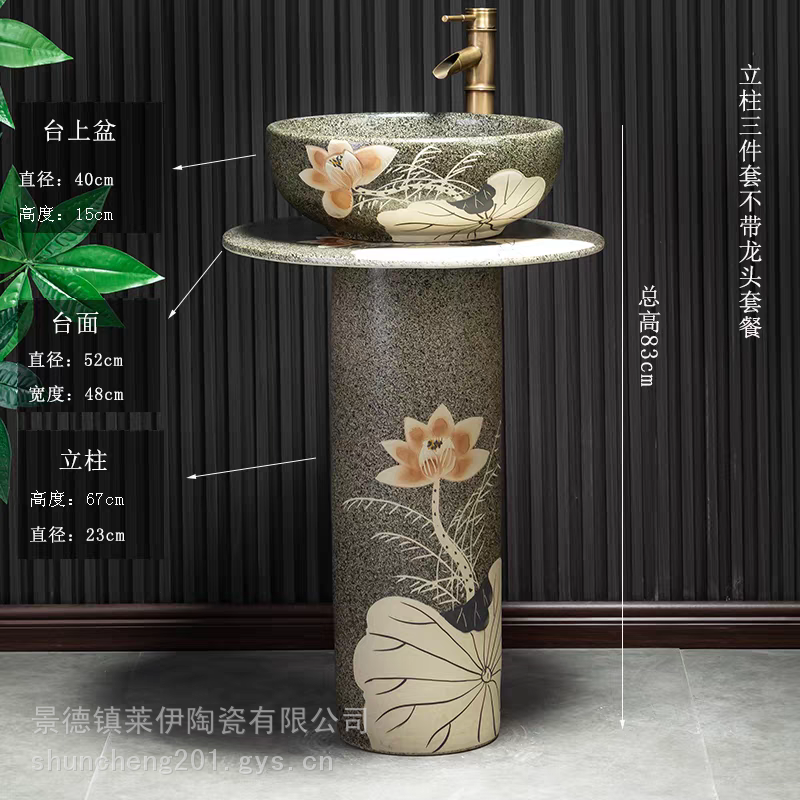 名宿特色洗手陶瓷水盆 复古庭院户外陶瓷立柱盆台上洗手盆