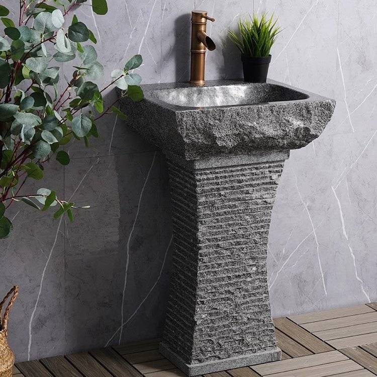 天然石头洗手盆户外简约立柱盆阳台庭院一体花岗岩洗脸盆
