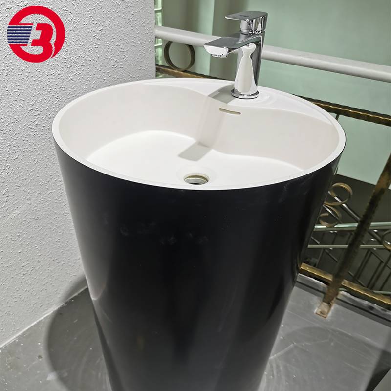 客栈酒店阳台卫生间落地立柱盆 人造石亚克力一体洗手盆