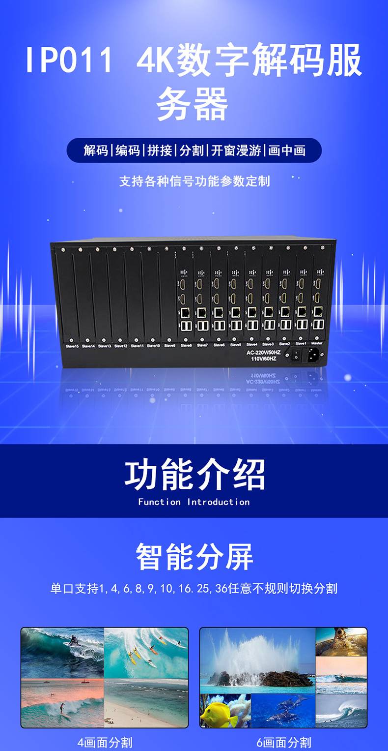 邮科IP011 4K数字解码器 高清视频显示 智能分屏 支持功能选配