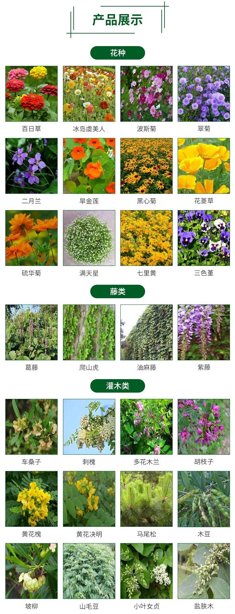 观叶种子 草坪种子 牧草种子 林木种子 观花种子