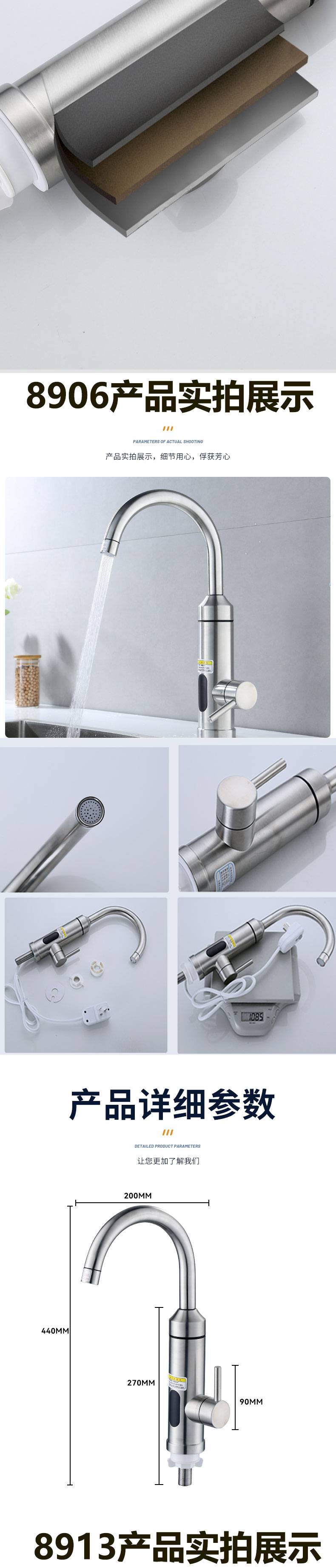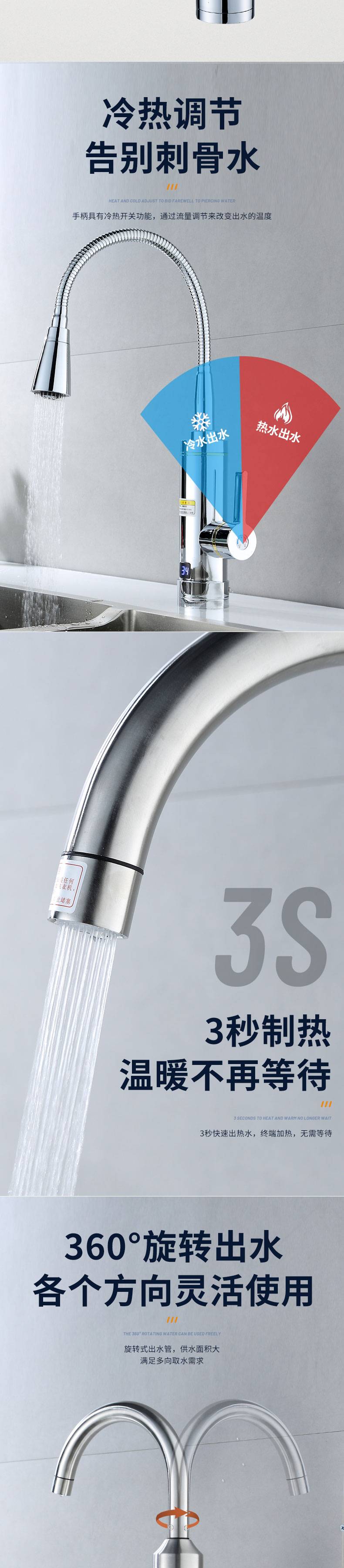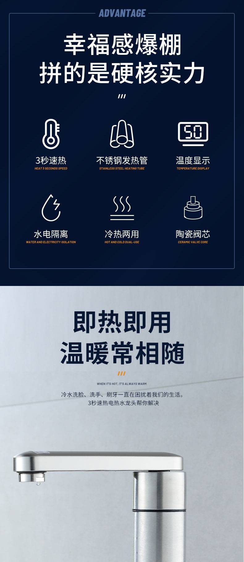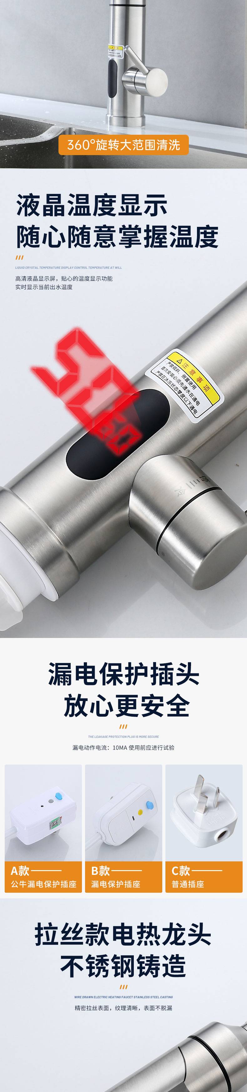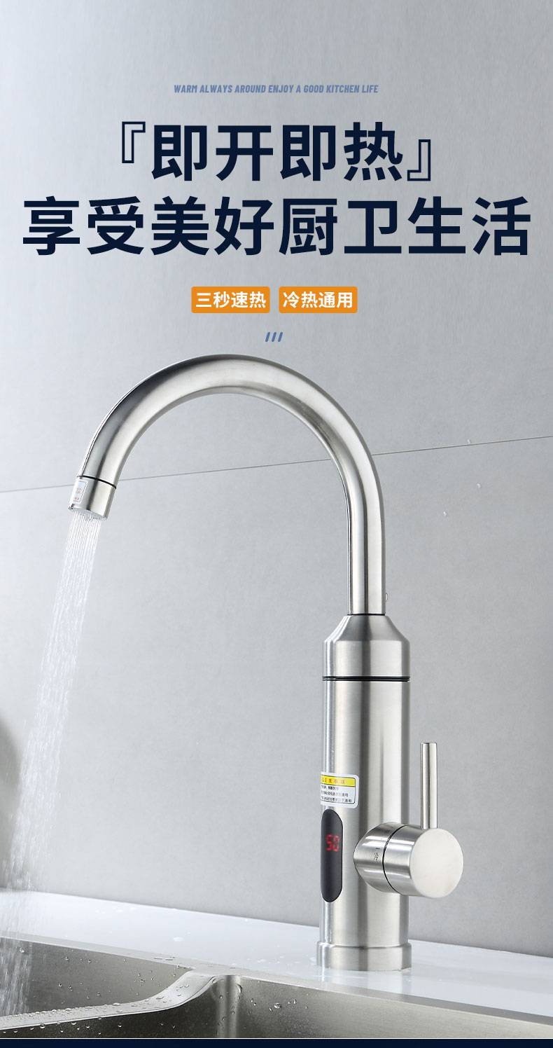 安迅快热不锈钢即热式电加热水龙头数显冷热面盆洗手洗菜盆家用