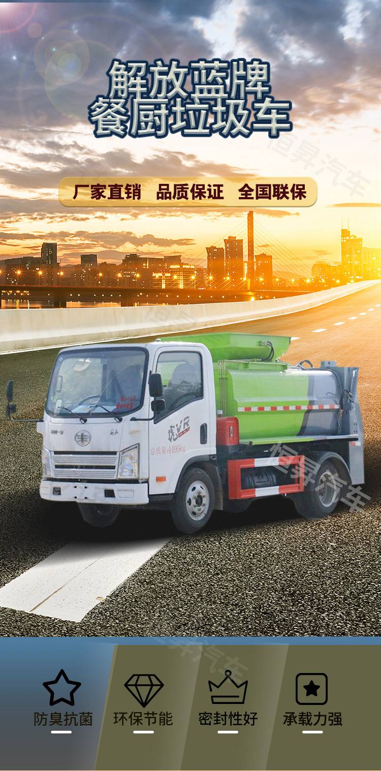 解放5方6方餐厨垃圾车 泔水无泄漏自挂自卸餐余分类清运收集车