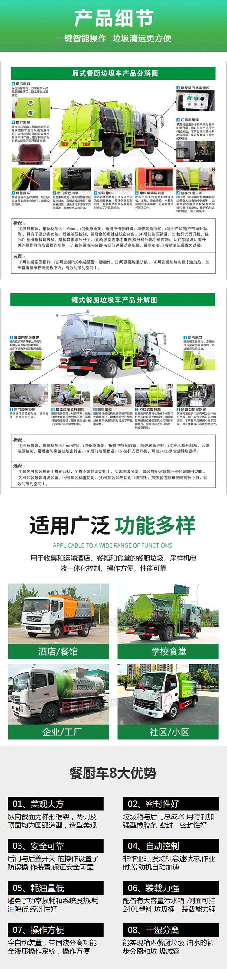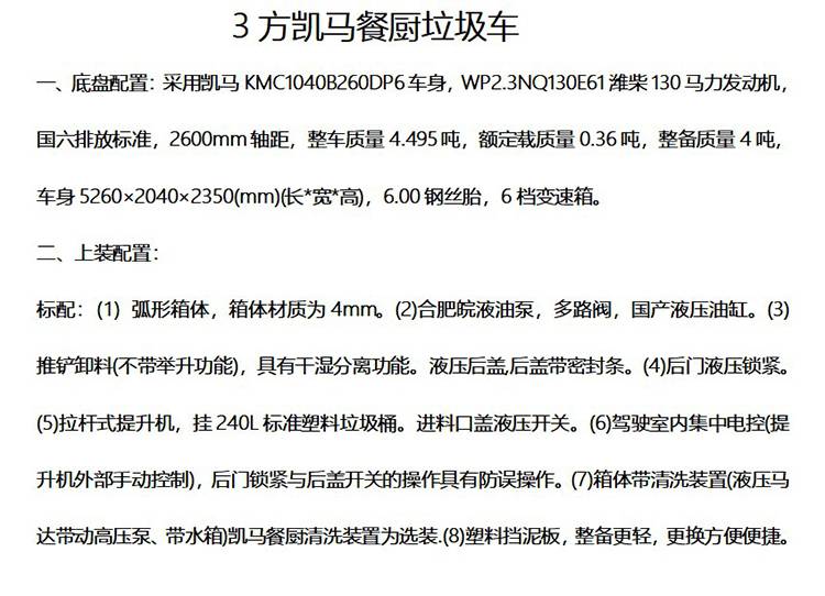 凯马3方蓝牌餐厨垃圾车自卸自动顺序作用手动室外操作送车上门