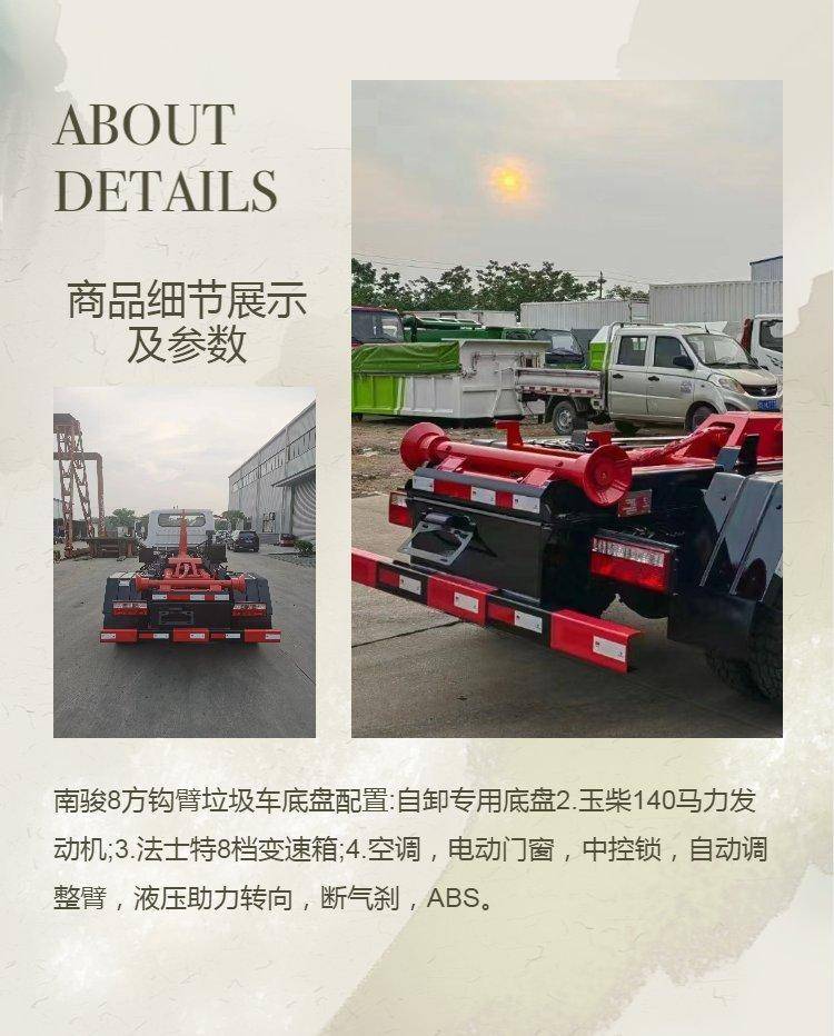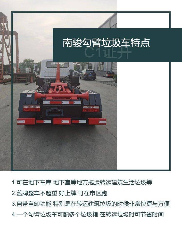 蓝牌南骏10吨勾臂式垃圾车 7方可下地下室的勾臂建筑自卸车