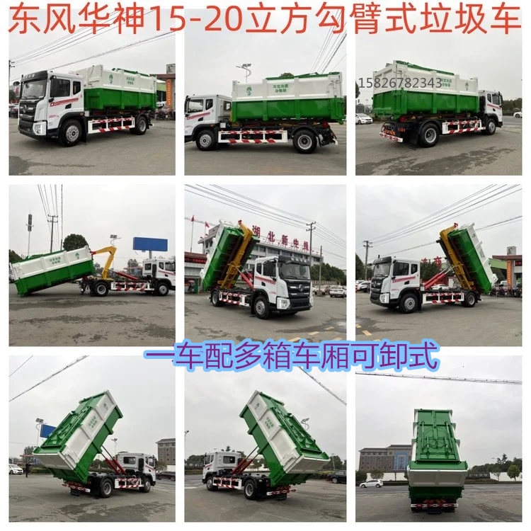 20方勾臂式污泥车 钩臂污泥粪污自卸车 一车搭多箱粪污转运车